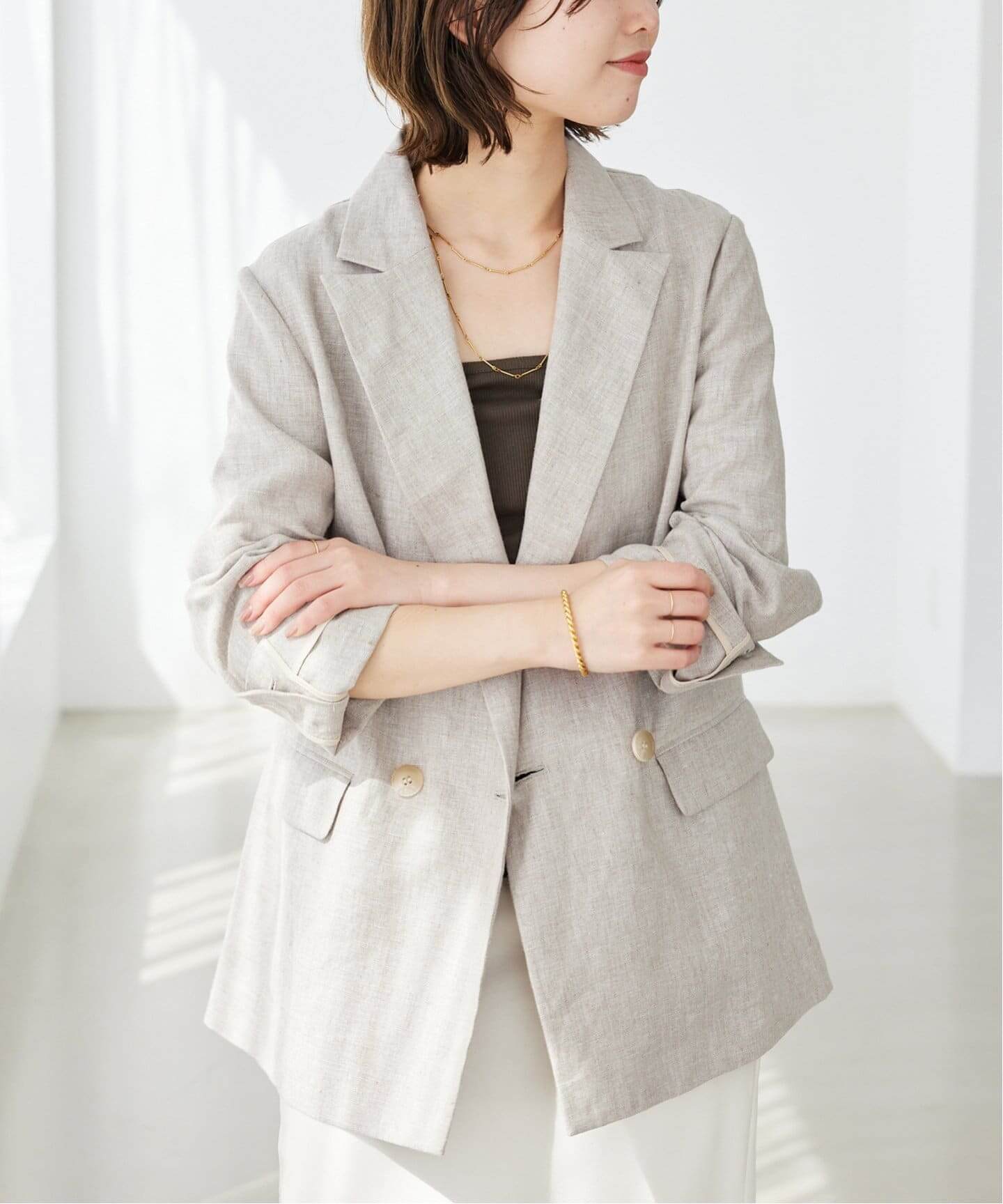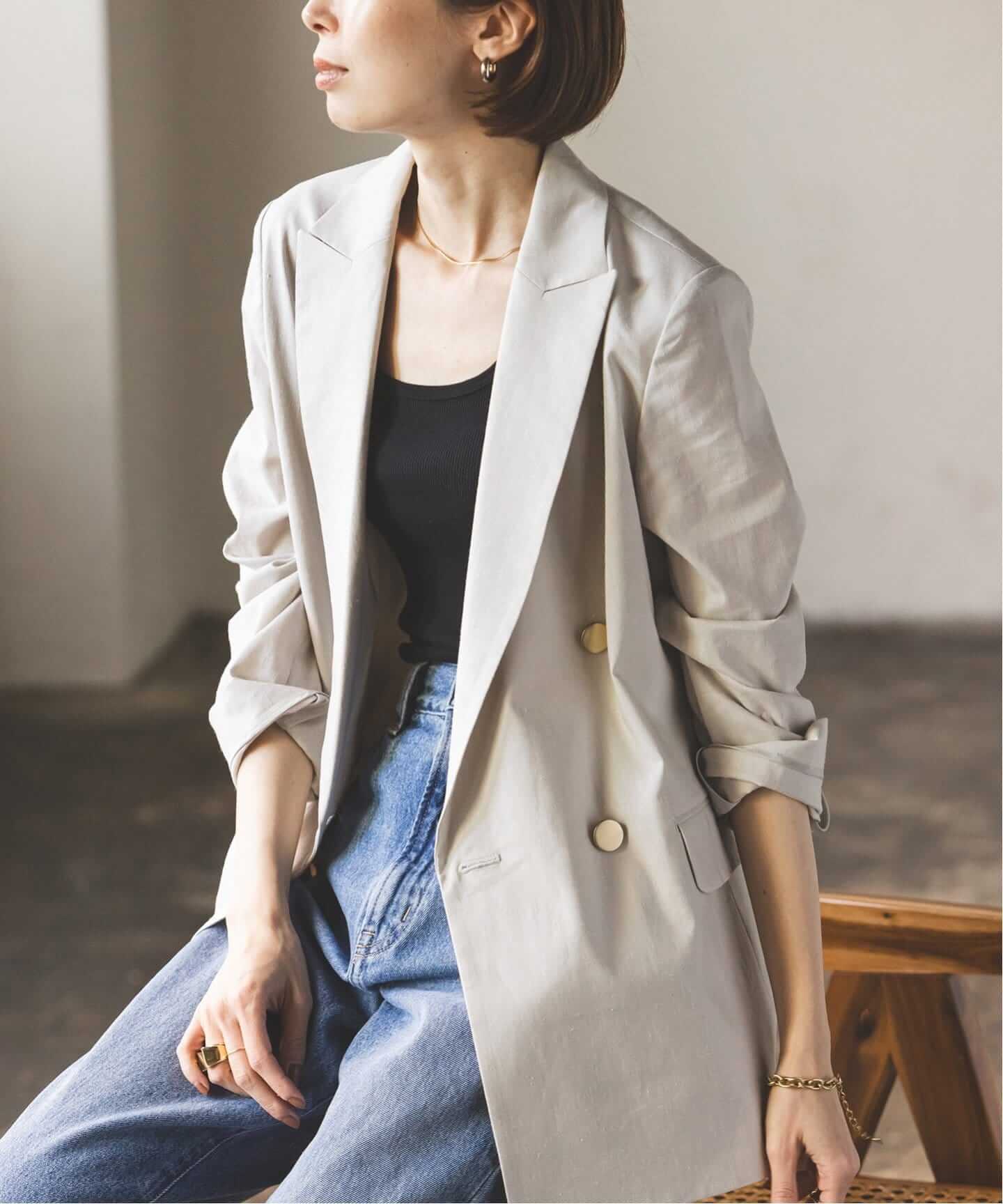 今どきジャケットジャケットはこの春、スタメンアウターの筆頭!初心者さんに最適なのはSLOBE IENAのテレデランダブルジャケットやrelumeのダブルフロントテーラードジャケット。季節感を楽しめるのはNOBLEの麻ストレッチピークドラペルダブルジャケット。