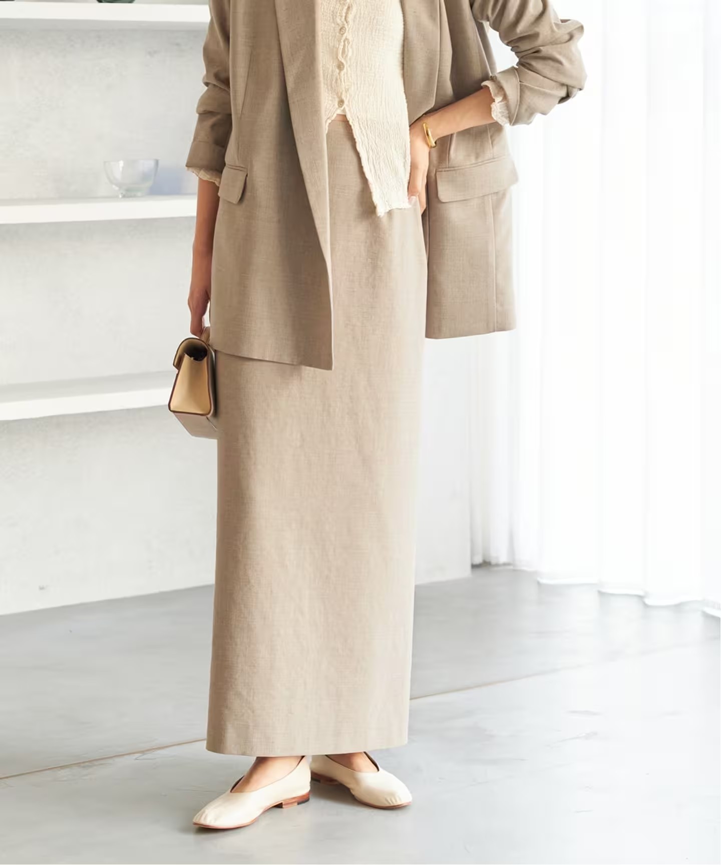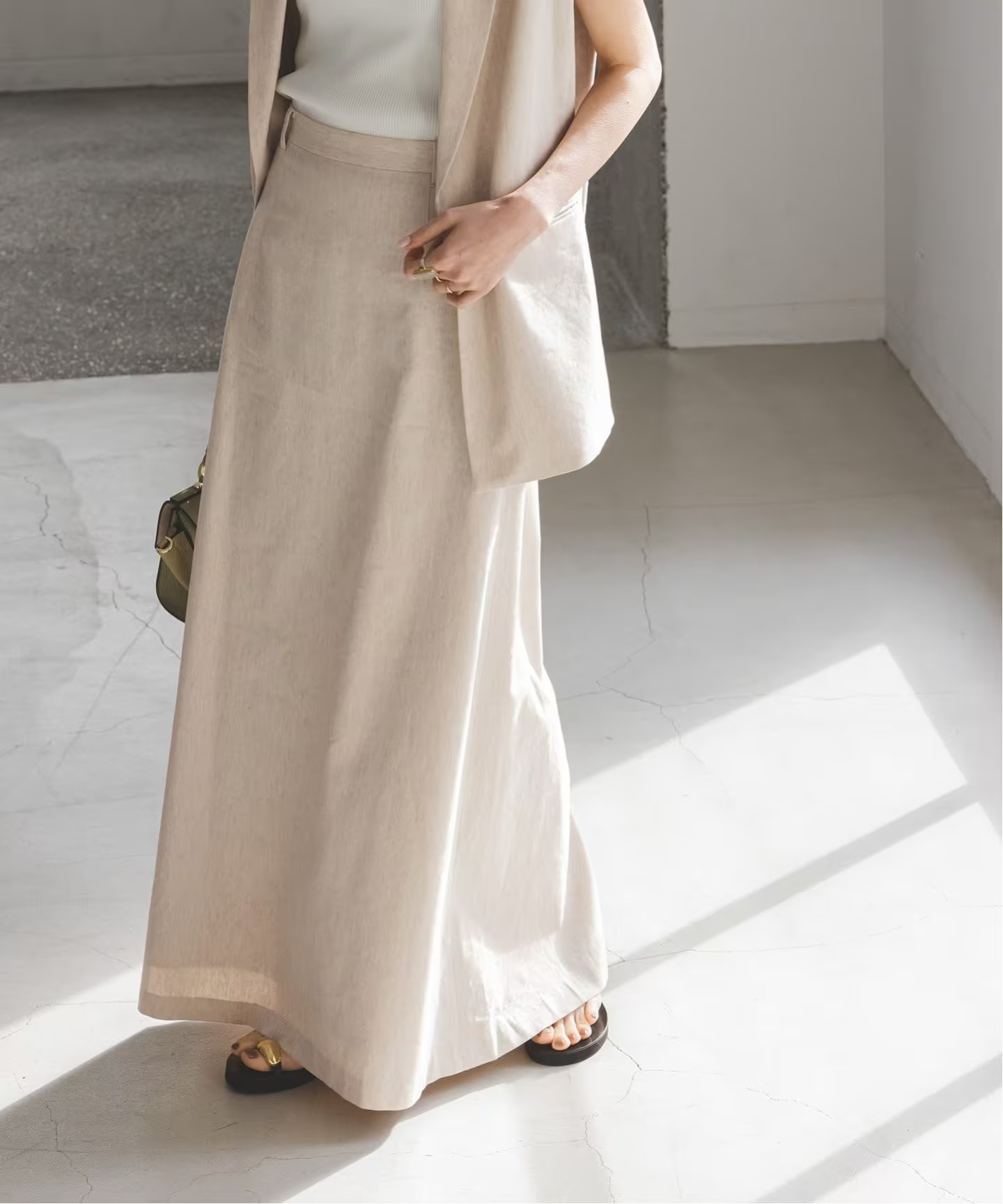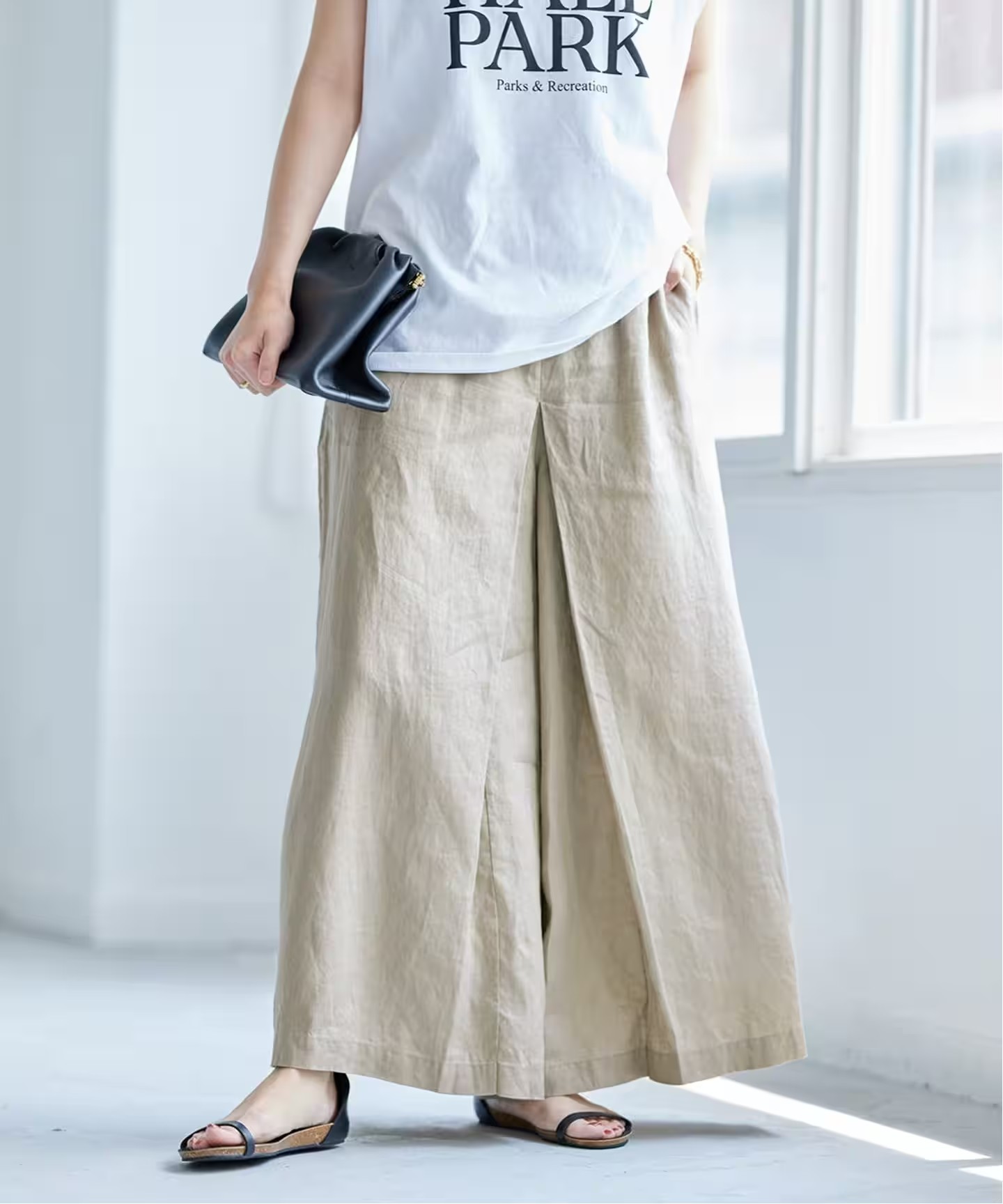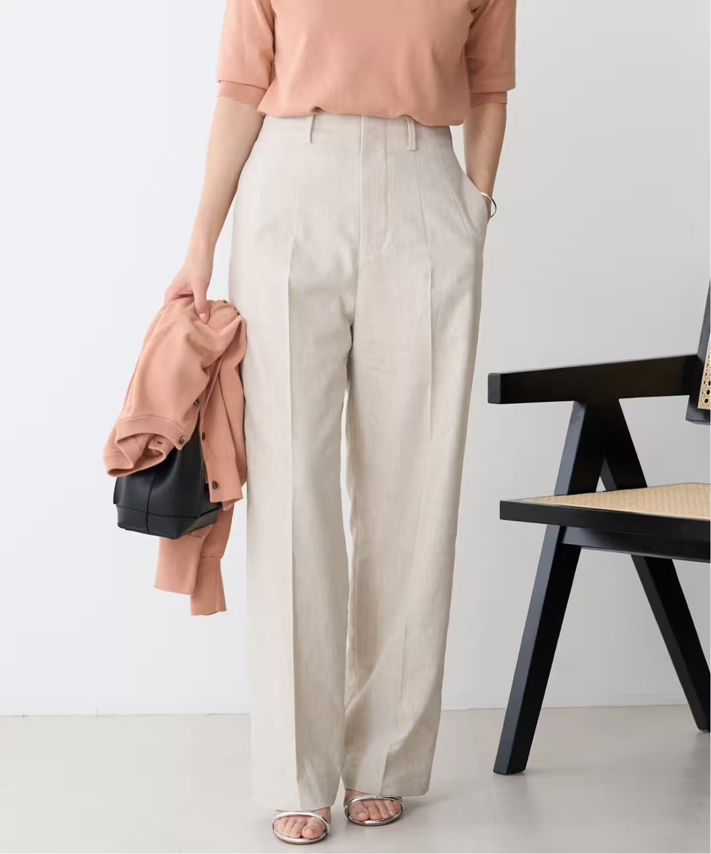 ベージュボトムスTシャツなどのカジュアルアイテムにつなぐだけでモダンに洒落るベージュボトムス。さらっとドライなリネン素材が春の狙い目。パンツはワイドストレートスラックス、スカートはマキシ丈を選ぶのが大人の最適解。