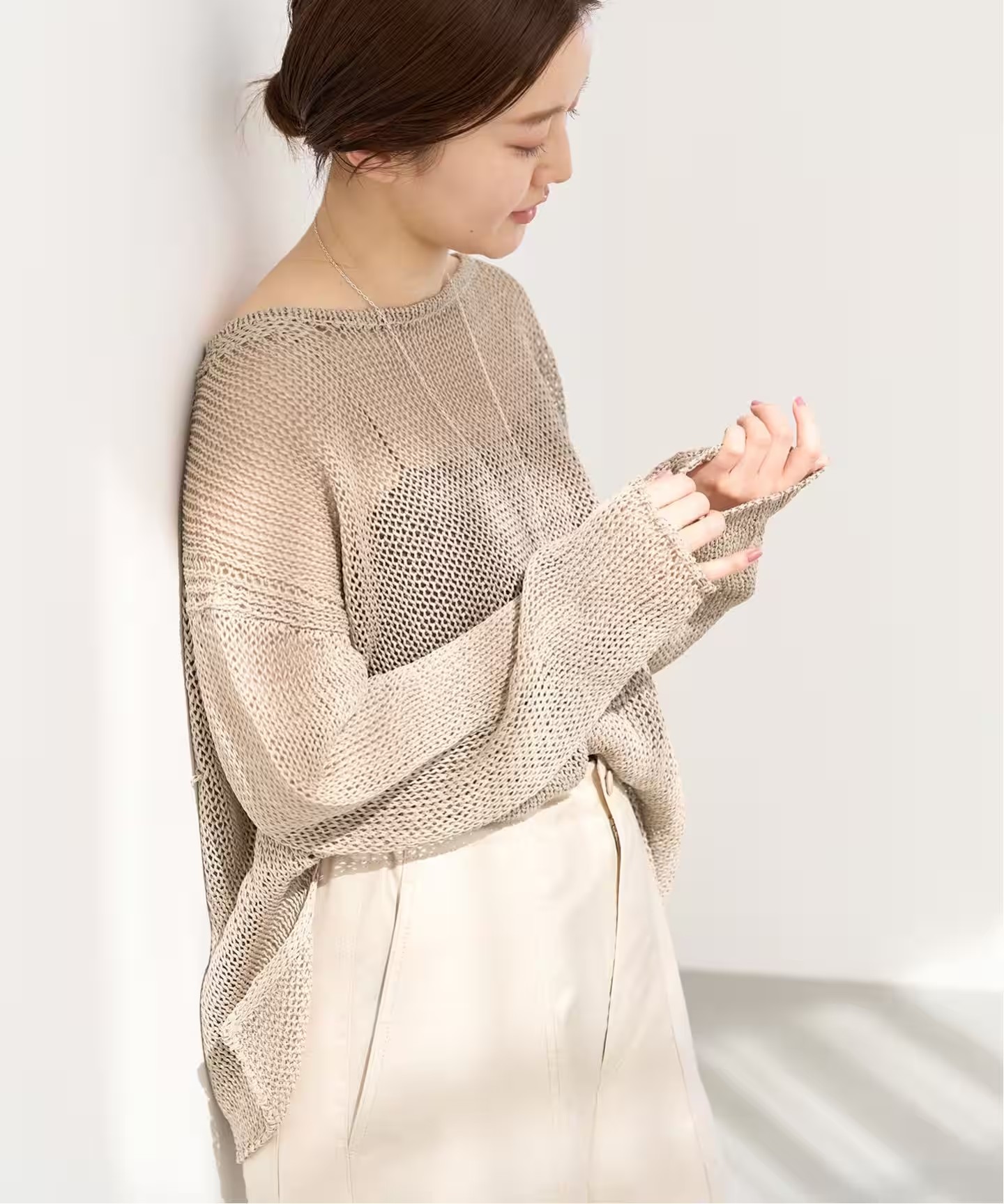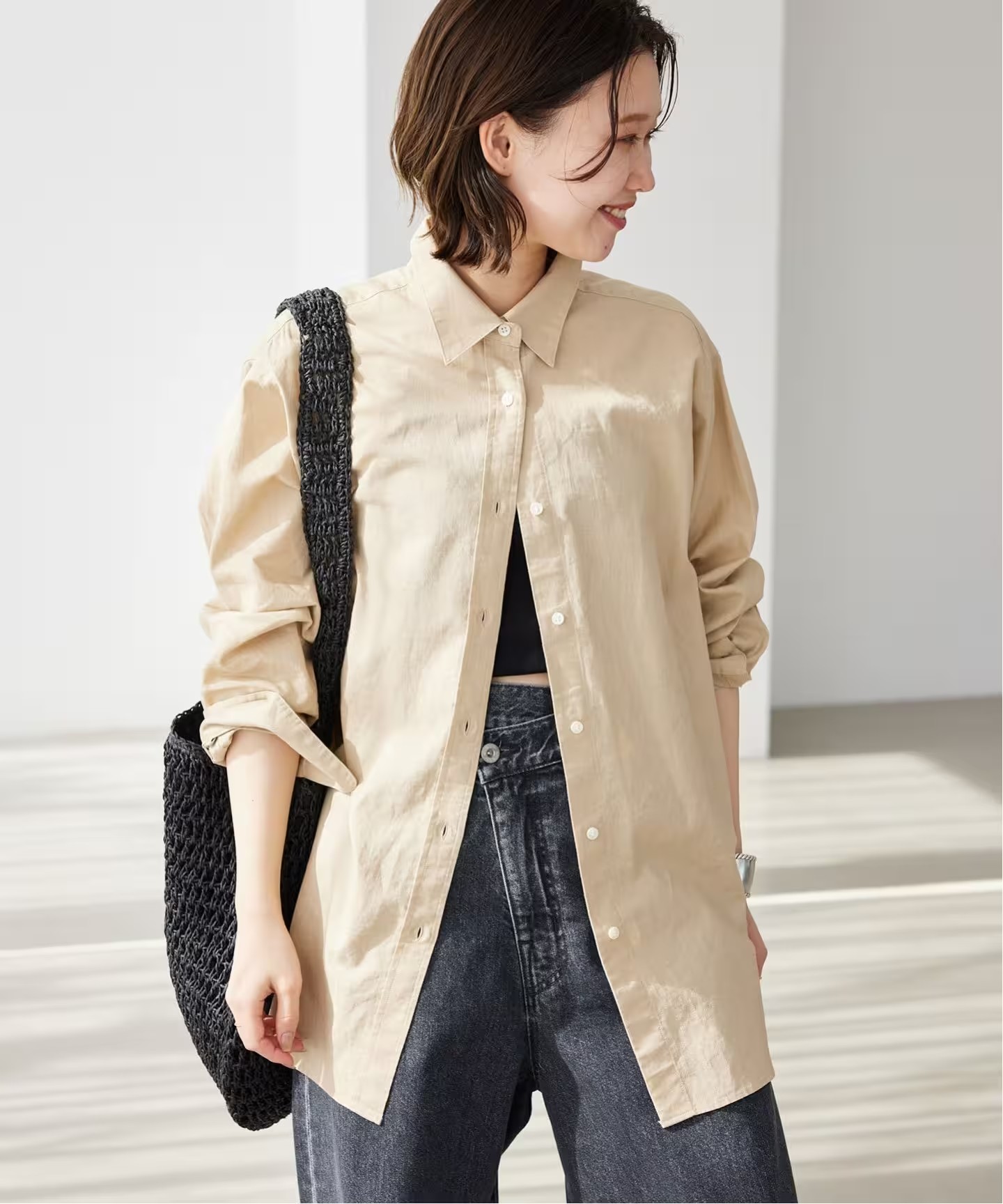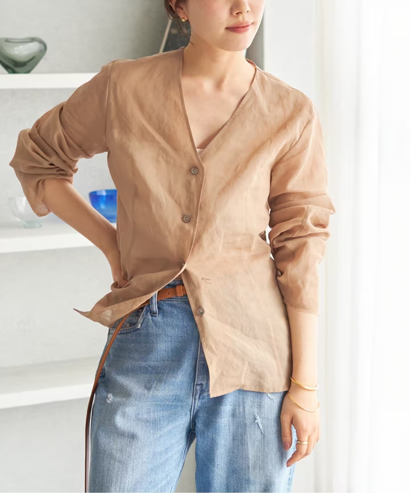 ニュアンスがカギ女っぽいシアーな透け感のあるトップス。ベージュなら色っぽさよりもモダンさやヘルシーさを引き寄せて、洗練された印象にブラッシュアップ。IENAのギマコットンプルオーバーやPlageのSHEER COTTON VN ブラウスに注目して。