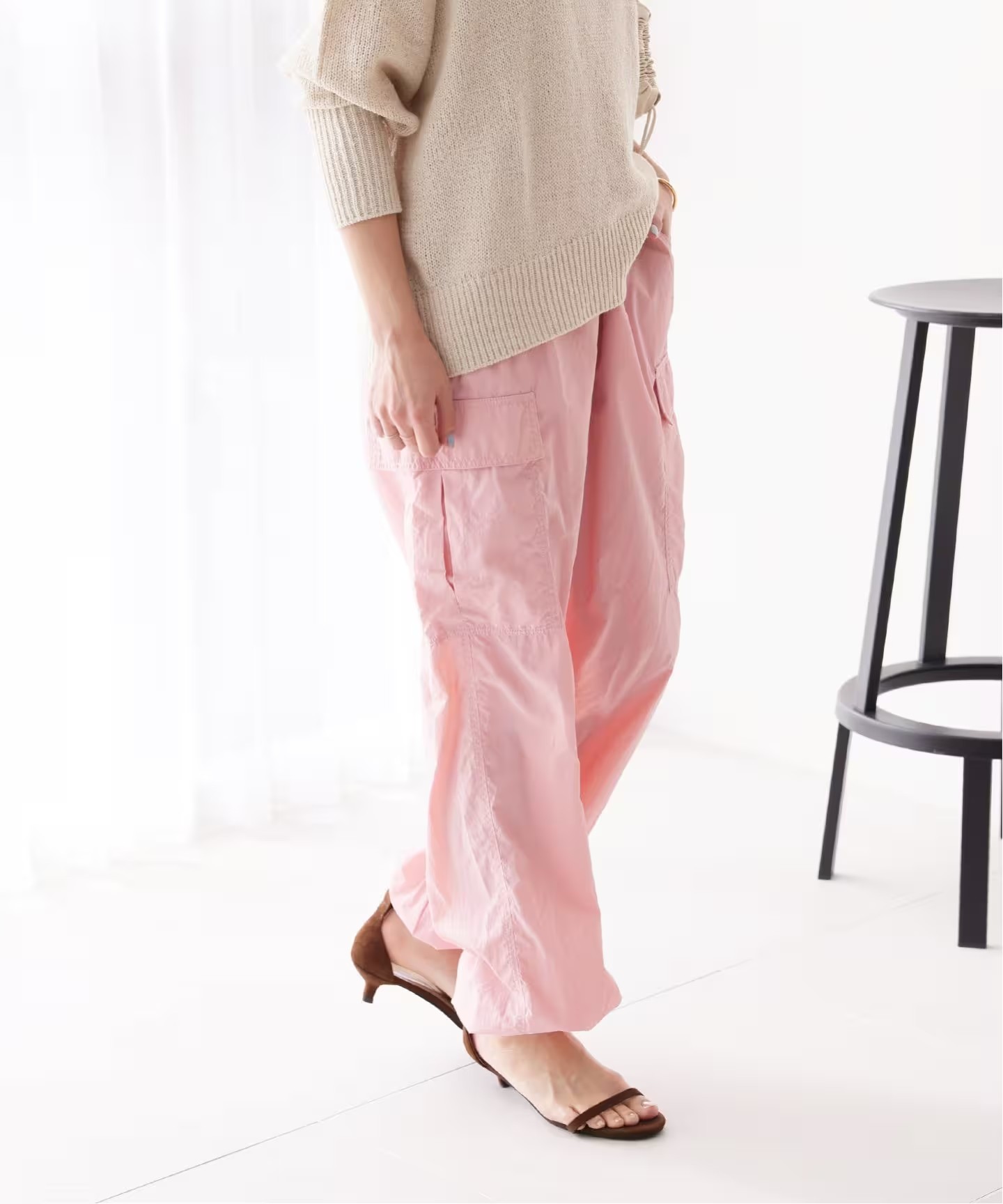 トレンドライクな着こなしに今季マストなカラーのひとつがペールピンク。甘辛バランスが抜群に今年らしい、ペールピンクのメンズライクなカーゴパンツやチノワイドパンツはトレンド大本命。甘カラーをラフに着こなすのがポイント。