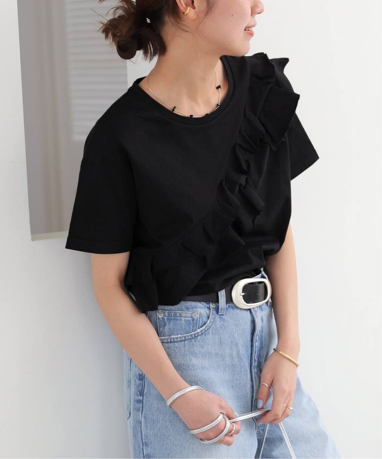 可愛い今っぽディテールにキュン甘すぎない濃色ベースの小花柄ブラウスはデイリーに使いやすく、大人可愛いフレンチスリーブが肩周りをさりげなくカバー。アシンメトリーなフリルがキャッチーなTシャツも、春夏のスタメントップスになること間違いなし。
