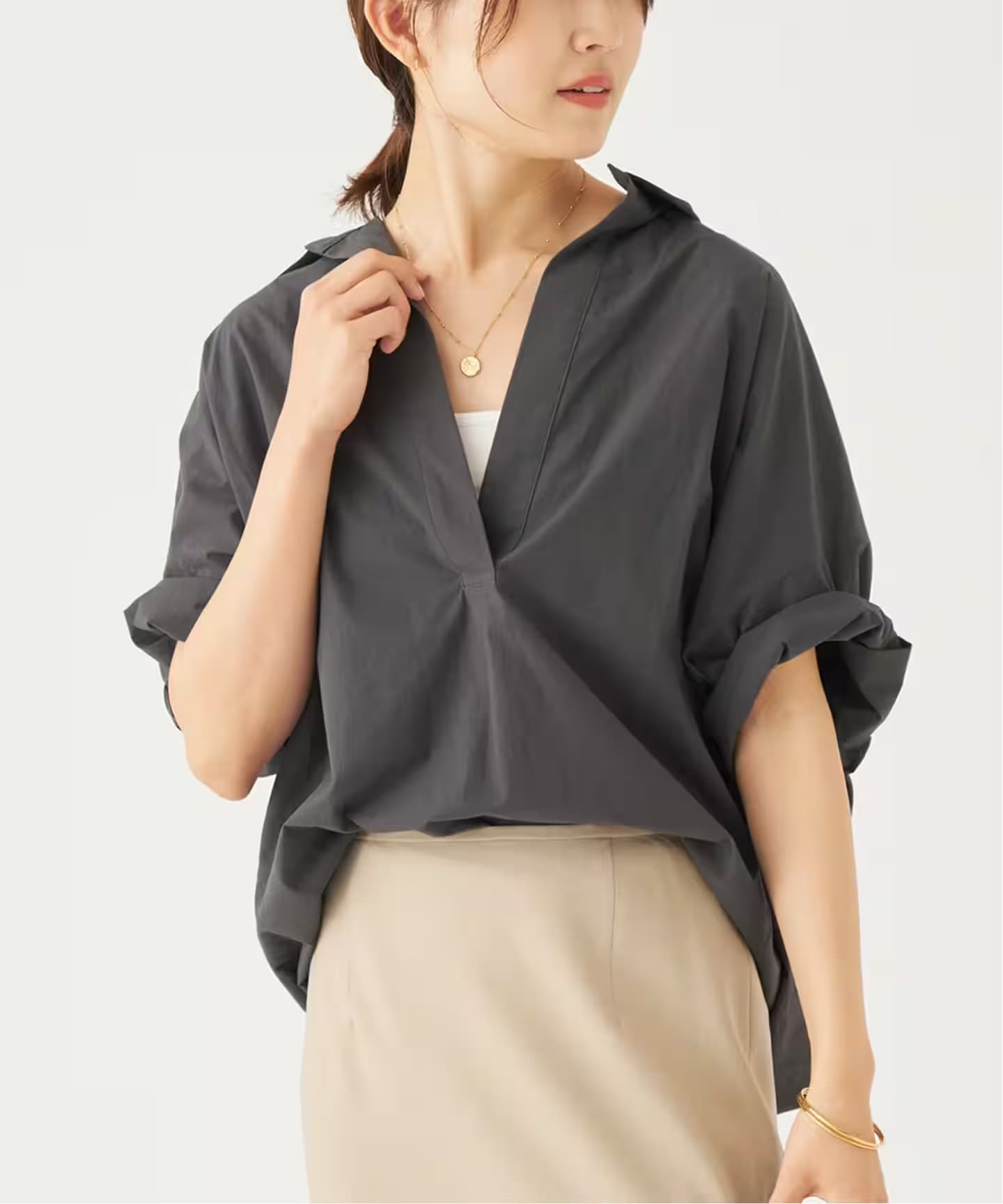 美人度を高めるワンランク上のワードローブハンカチーフヘムのようなスクエアスリーブがありそうでない着映えブラウスや、1枚で美人スタイルが完成する、大人のためのブラックサマーニットドレス。マリンなエッセンスが着映えるワイドパンツも注目して。
