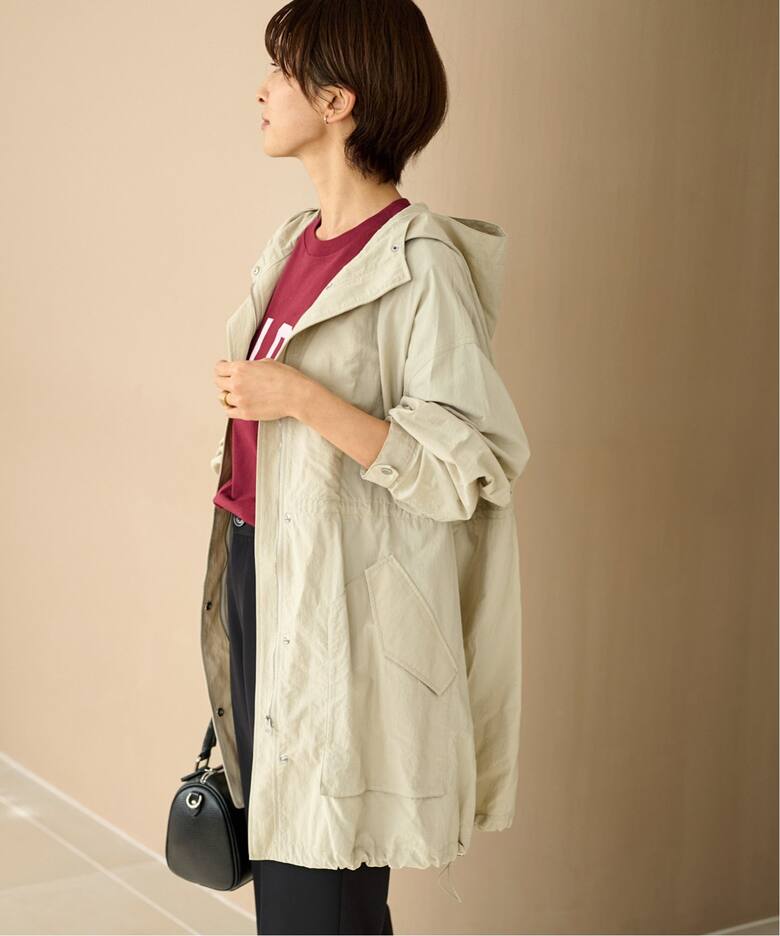 ベージュコートはデザインにひとひねりをトレンチコートに代表されるベージュのスプリングコートをまずチェック。さっと羽織りやすいショートトレンチから、サステナブルなリサイクルナイロンフーディー、気分に合わせて着こなしを変えられる2WAYまで個性豊か。