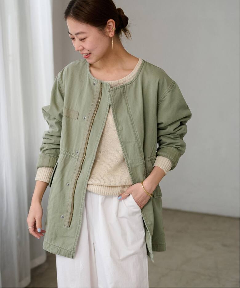 トレンドライクに楽しむこの春ミリタリーがトレンドに浮上したことにともなって、ミリタリーグリーンのアウターが続々登場。旬なバランスが簡単に作れるクロップド丈ブルゾンや、スッキリとキレイめに仕上がるノーカラーモッズが狙い目。