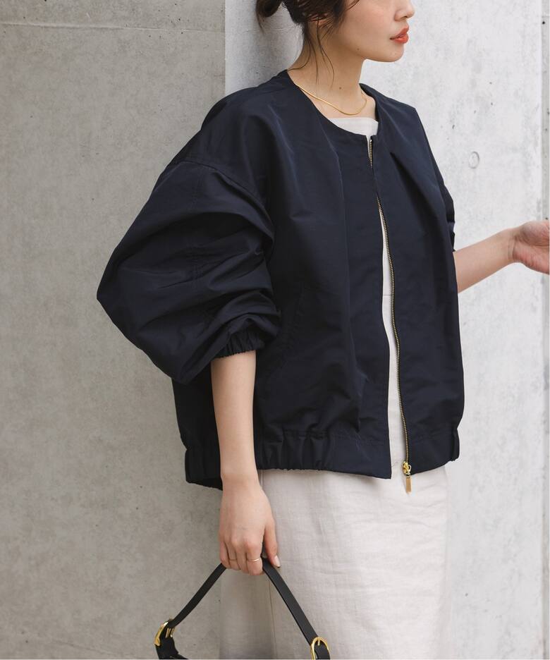 ブルーを女っぽく着こなす着慣れたネイビー&ブルーのアウターは、コクーンシルエットやバルーンスリーブといったフェミニンなデザインをあえてチョイス。端正なカラーなので大人コーデと相性よく、着映えディテールが無難な印象を回避してお洒落度を格上げ。