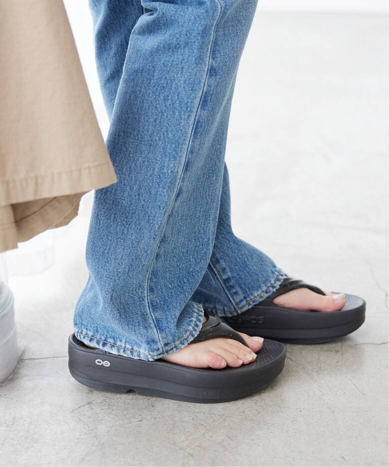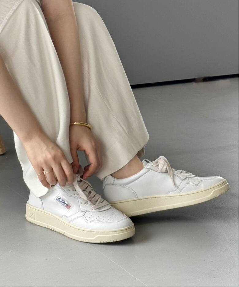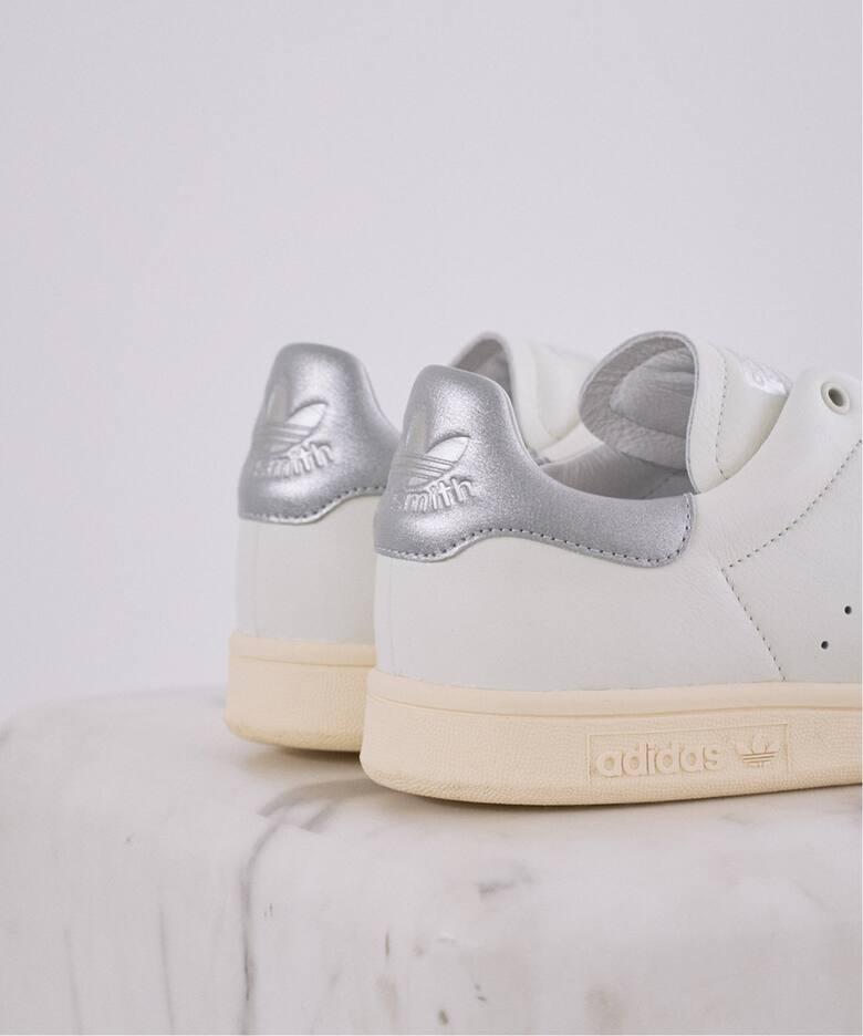 ホワイトスニーカー足元はアクティブに動けるスニーカーやフラットサンダルが最適。adidas Originals for EDIFICE/IENAの別注STANSMITH LUXは、クリーンなホワイトのボディにシルバーのヒールパッチがセンスの光るアクセント。