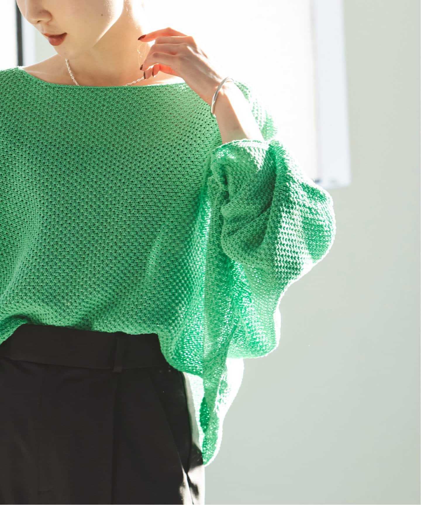 カラーニットが着映える春夏シーズンはシャリっとしたペーパーヤーンのニットがヘビロテ確実。抜け感のあるゆるシルエットのグリーンやサックスブルーなどカラフルなもの持っておくと1枚で華やかに仕上がっておすすめ。