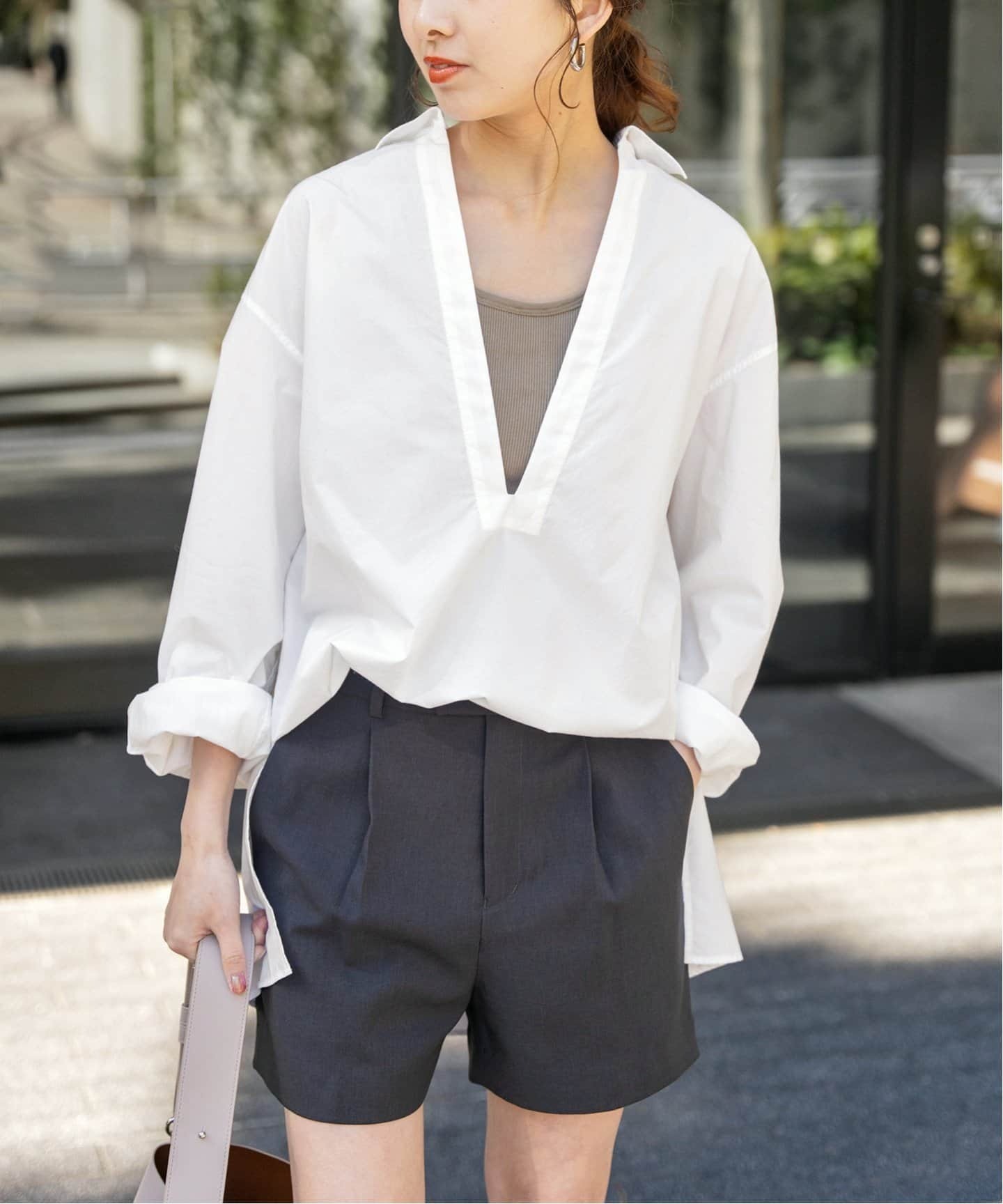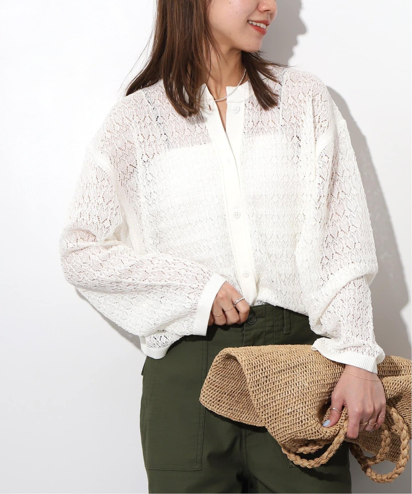 ホワイトトップスフェミニン派さんにおすすめなのは、やりすぎない甘デザインがデイリーに使えるrelumeレース編みクルーネックカーディガン。ハンサム派さんには、スタイリッシュな大人コーデに仕上がるSpick & Spanコットンポプリンスキッパーシャツが◎。