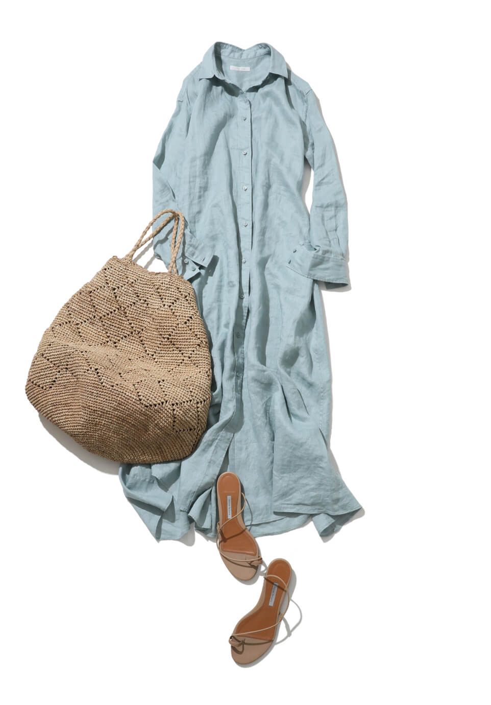 なんとなく調子が上がらない日は、キレイ色のワンピースの力を借りて。今シーズン注目のグリーンは、大人も着られる華やかカラーでおすすめです。さらに春夏らしい麻素材の襟付きデザインなら、甘めなフレアシルエットも気負わず楽しめそう。コーデのワンポイントには、同じくトレンドのビッグサイズなカゴバッグを添えて。