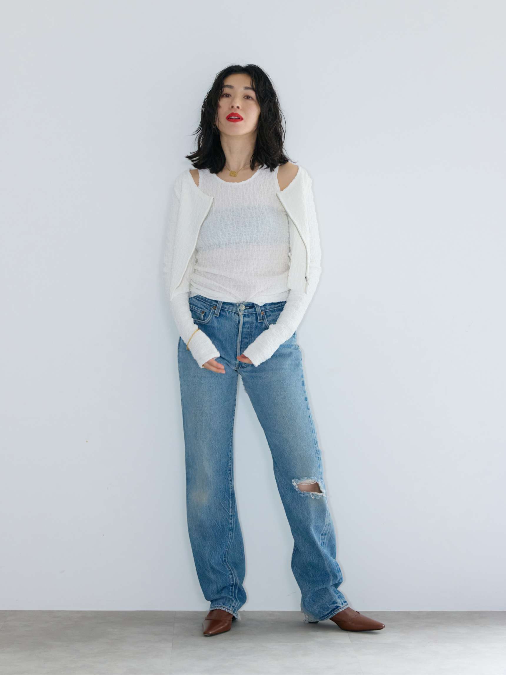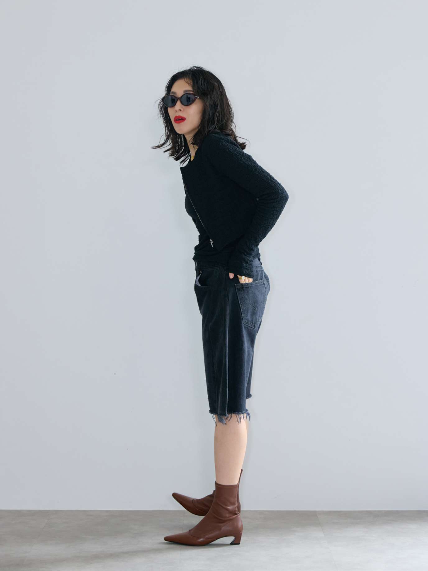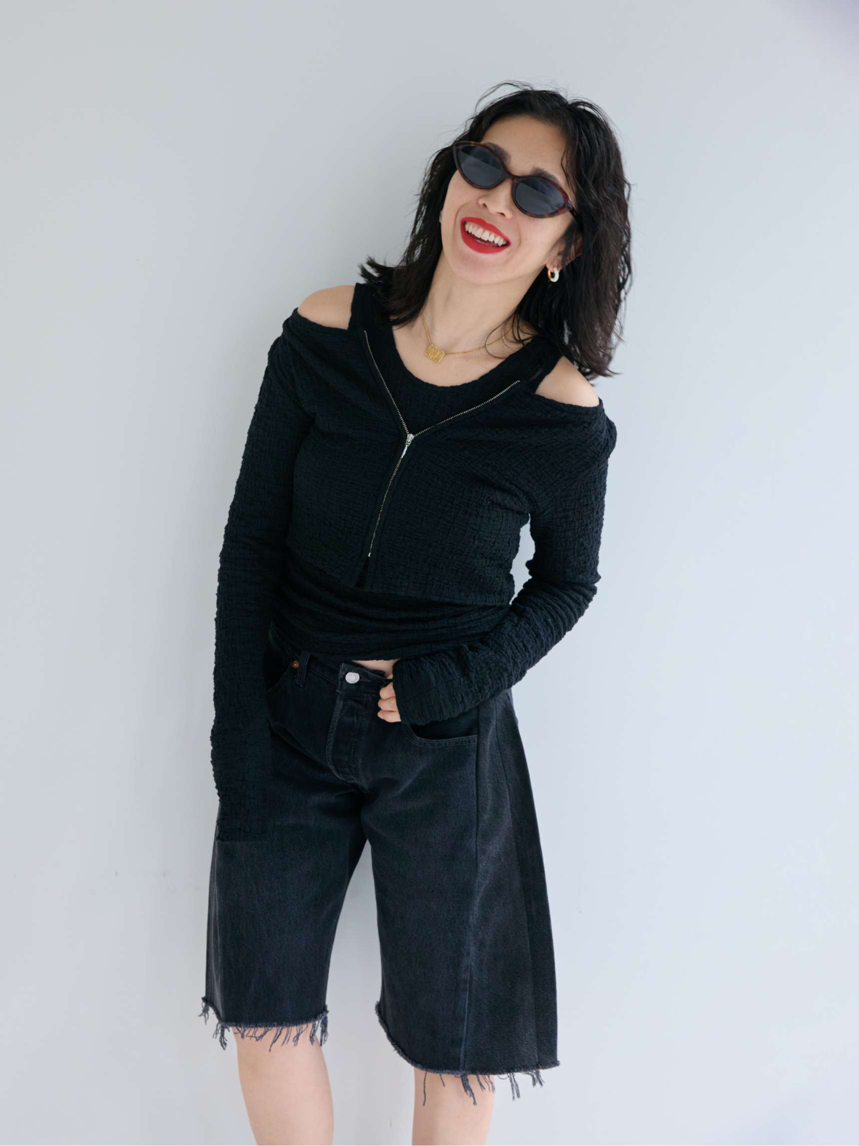 モダンで洗練されたデニムスタイルを提案する「THENIME」。オリジナリティあふれるデニムアイテムを得意とする「OUT OF FRAMe」に親和性を感じて、コラボレーションをオファー。パーツや素材選び、加工にもこだわったベストとスカートが完成しました。
