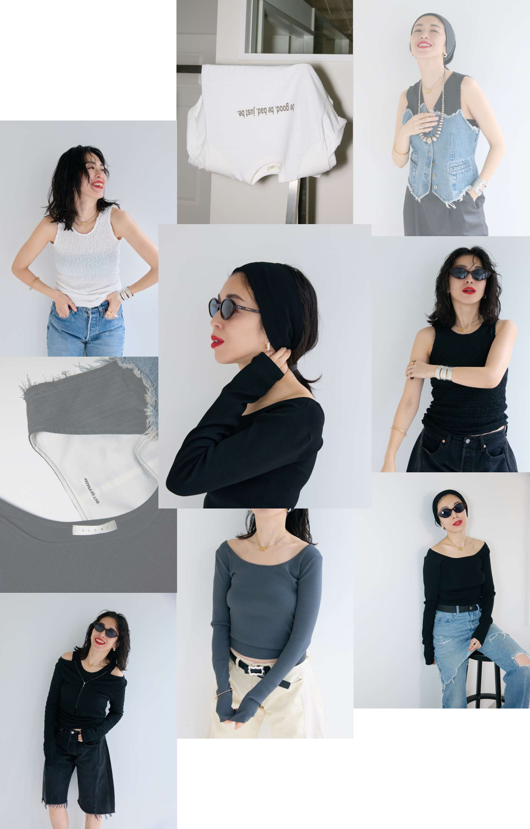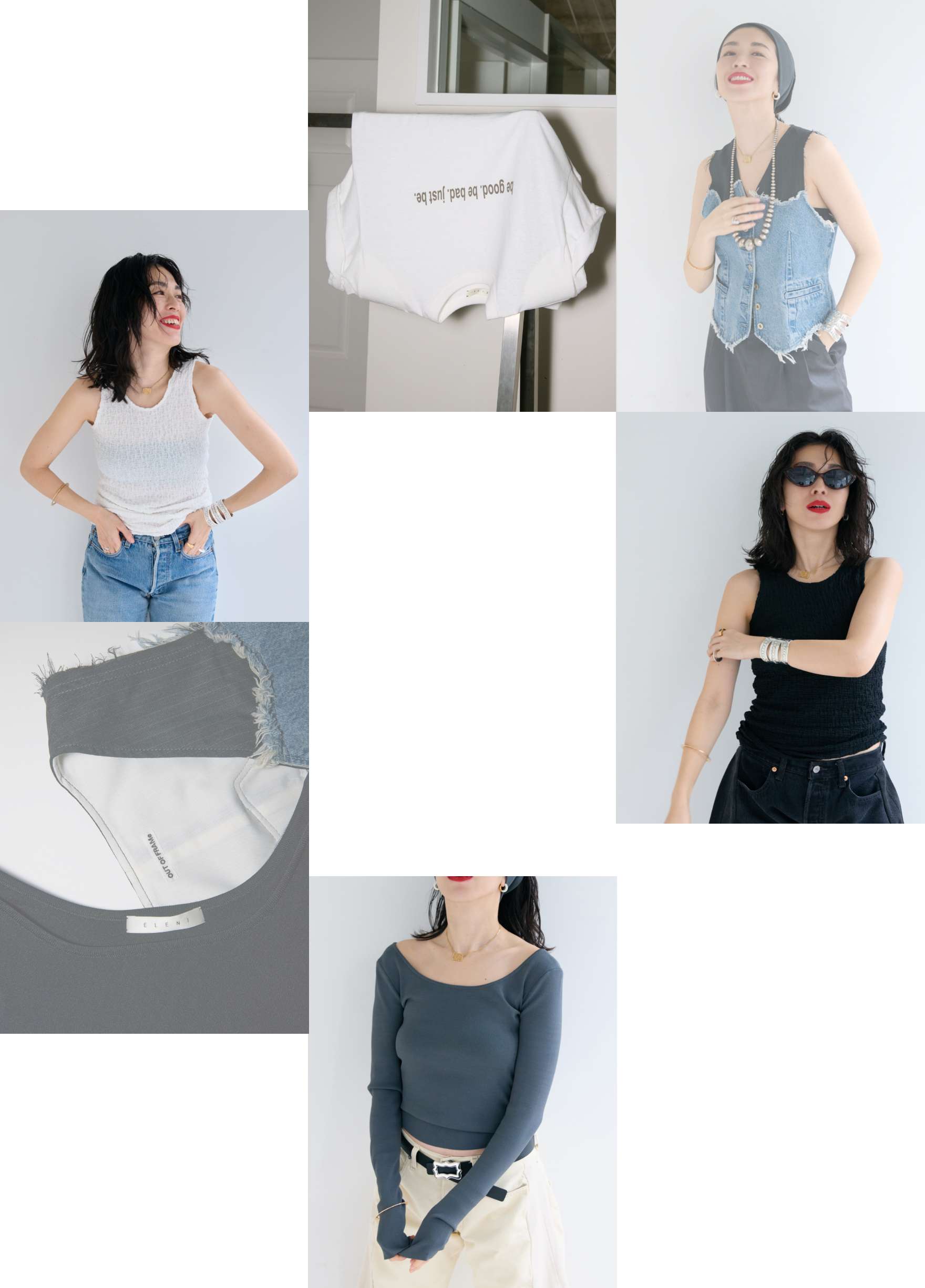 「THENIME」が理想とする感度の高いデニムのスタイリングを叶えるために、シンプルな中に大人の女性らしさを表現する事が得意な「ELENI」とコラボレーション。女性らしく美しいラインを活かした、カットソーのコレクションを作りました。