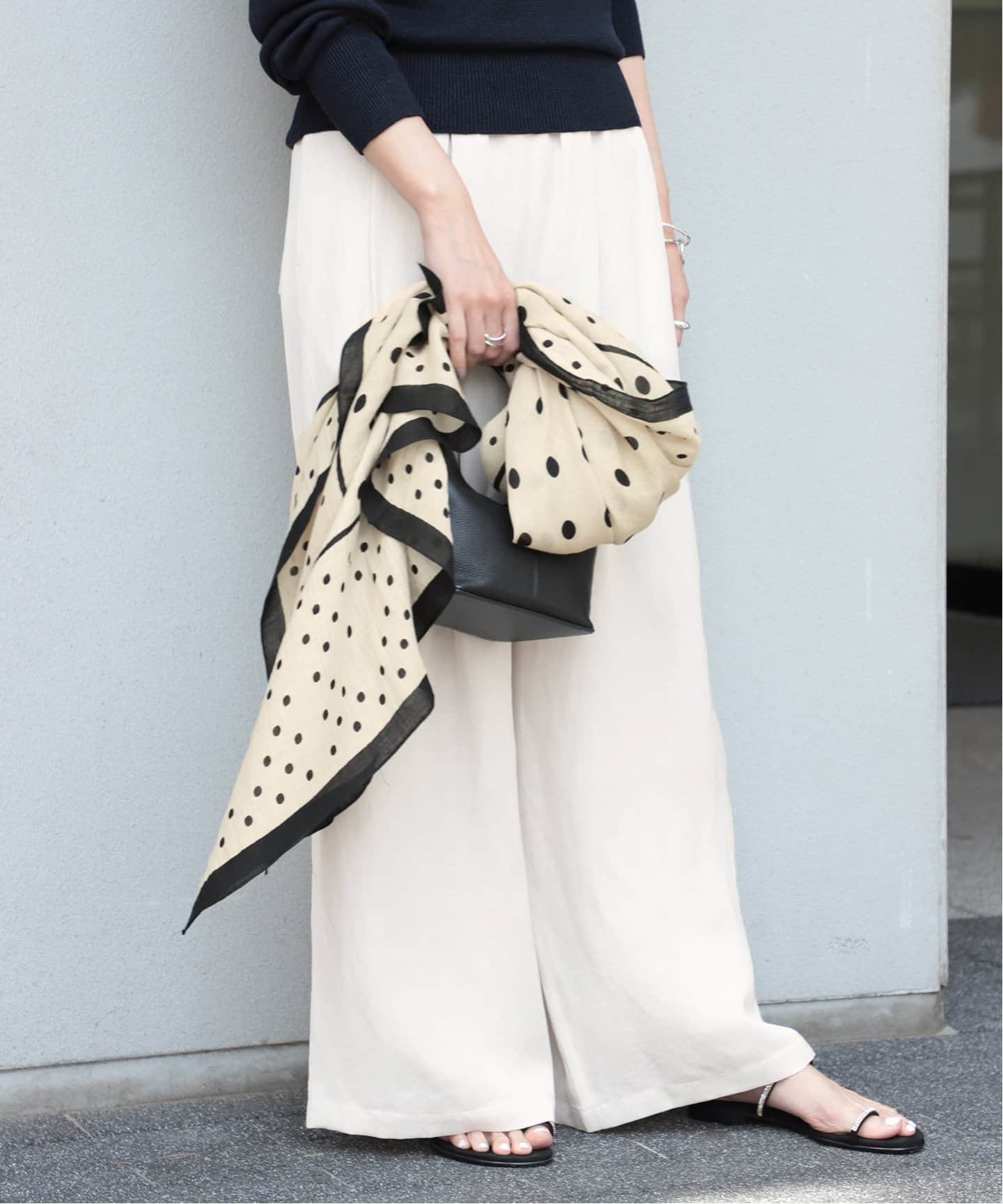 クラシカルなデザインなら飽きない夏から秋にかけて手放せない日傘。シックなモノグラムがリュクスなmanipuri×VERMEIL per ienaの折り畳み傘なら通勤スタイルともマッチ。朝晩の寒暖差対策にも使えるストールは、大判タイプをストックしておきたい。