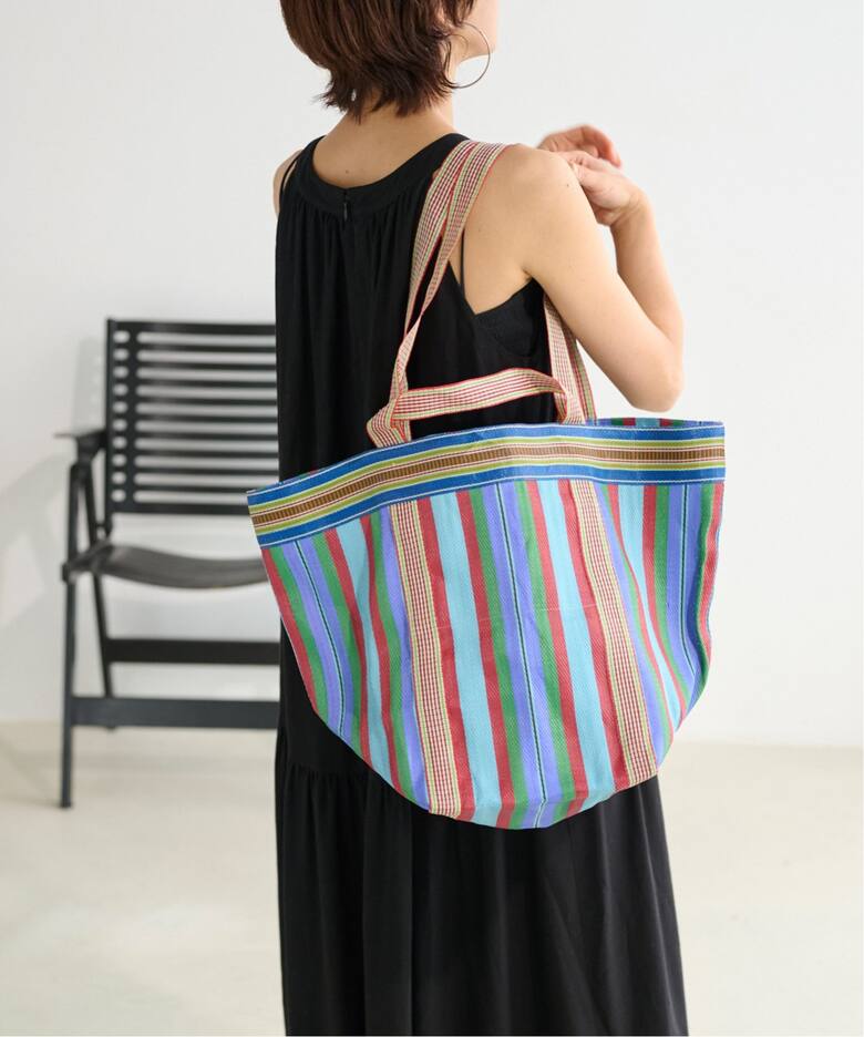 コーデのアクセントにもなるバッグお財布や携帯など手持ちの荷物が入る容量と、ストレスフリーに持てるストラップ、そして今っぽいモダンな佇まいのバッグを厳選。お土産などで大荷物になる日はPasand MULTI STRIPE MESH WIDE TOTE BAGが大活躍。