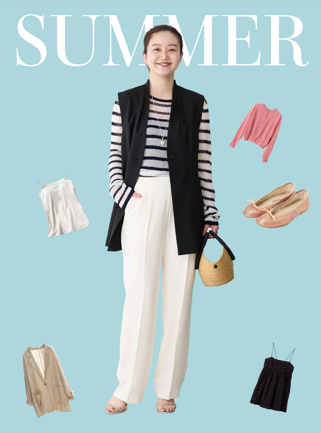 あるとないとで差がつくトップスTシャツの上やシアーカットソーの下にプラスしたい、デザインが目を引くキャミソールが大豊作。バンドゥーのように見える細めのストラップや背中を大胆に見せるバックオープンなど、女性らしいディテールが最旬。取り入れるだけですぐさま今年らしいレイヤードが叶うアイテム。タンクトップやTシャツ、シャツやワンピースなど幅広いアイテムにプラスしやすく、1枚持っているとスタイルバリエーションが広がっておすすめ。シンプルコーデに重ねると着こなしの完成度がぐっと高まるジレ・ベスト。一手間感のあるスタイリングに仕上がるほか、気になる体型カバーも叶う嬉しいメリットも。まずはヒップが隠れるIラインシルエットを選べば間違いなし。RELAXING PANTS