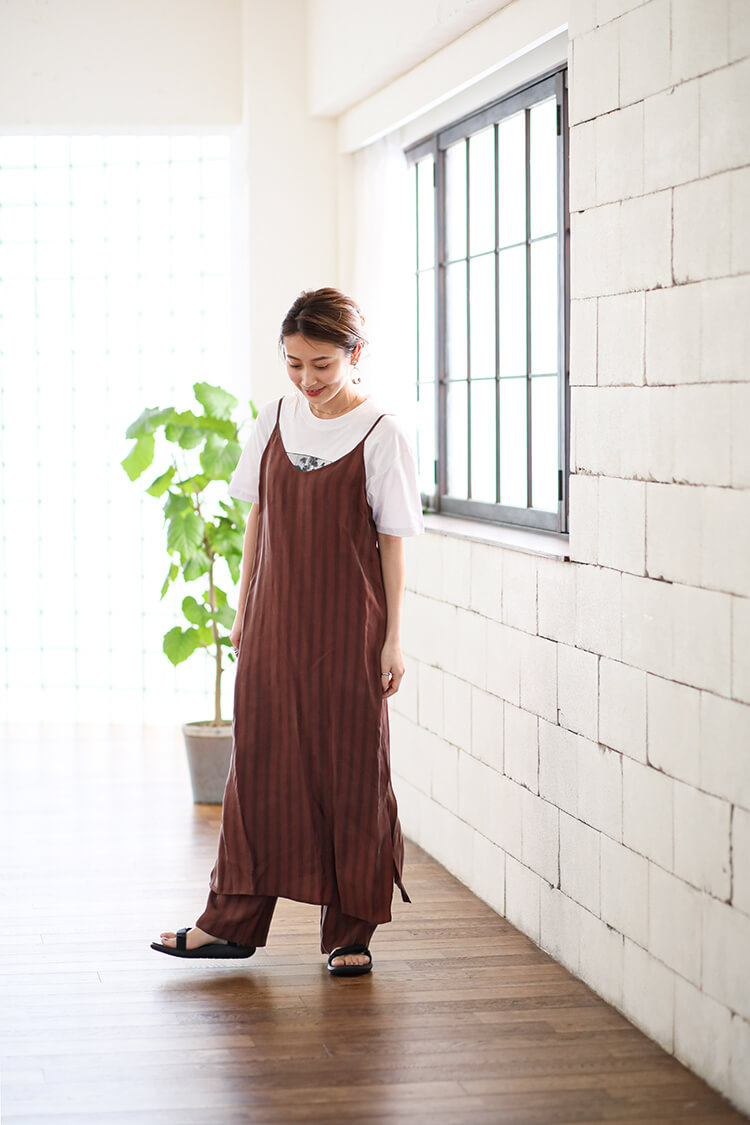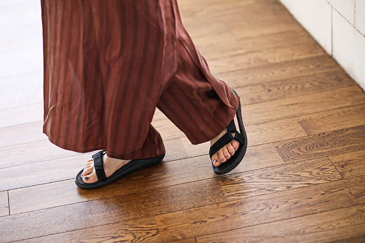 - さらっとしていて着心地の良いキャミワンピース とパンツのセットアップはインナー次第で1年中着られる優秀アイテム!「TEVA」のスポーツサンダルは歩行時の衝撃を和らげるクッション性を兼ね備えたソールで履き心地も快適◎