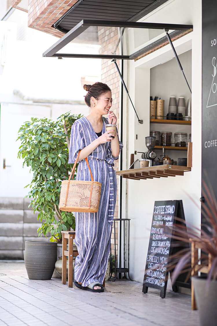 - 爽やかなストライプのオールインワンはリラクシングなのに1枚で決まる優秀アイテム◎