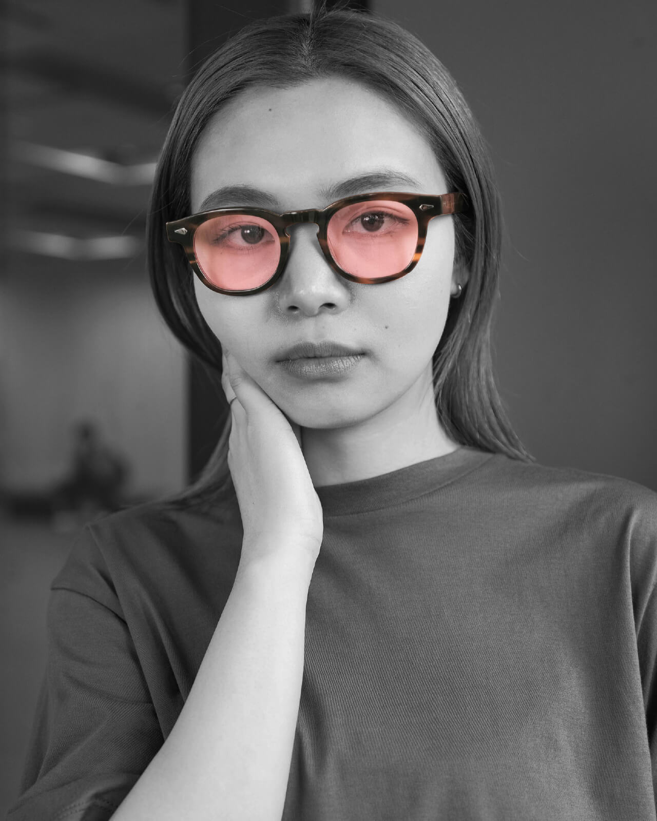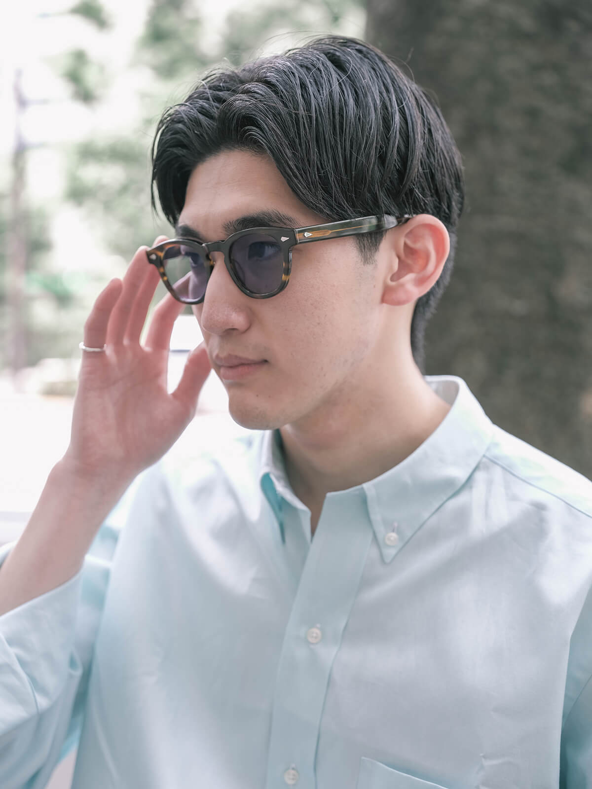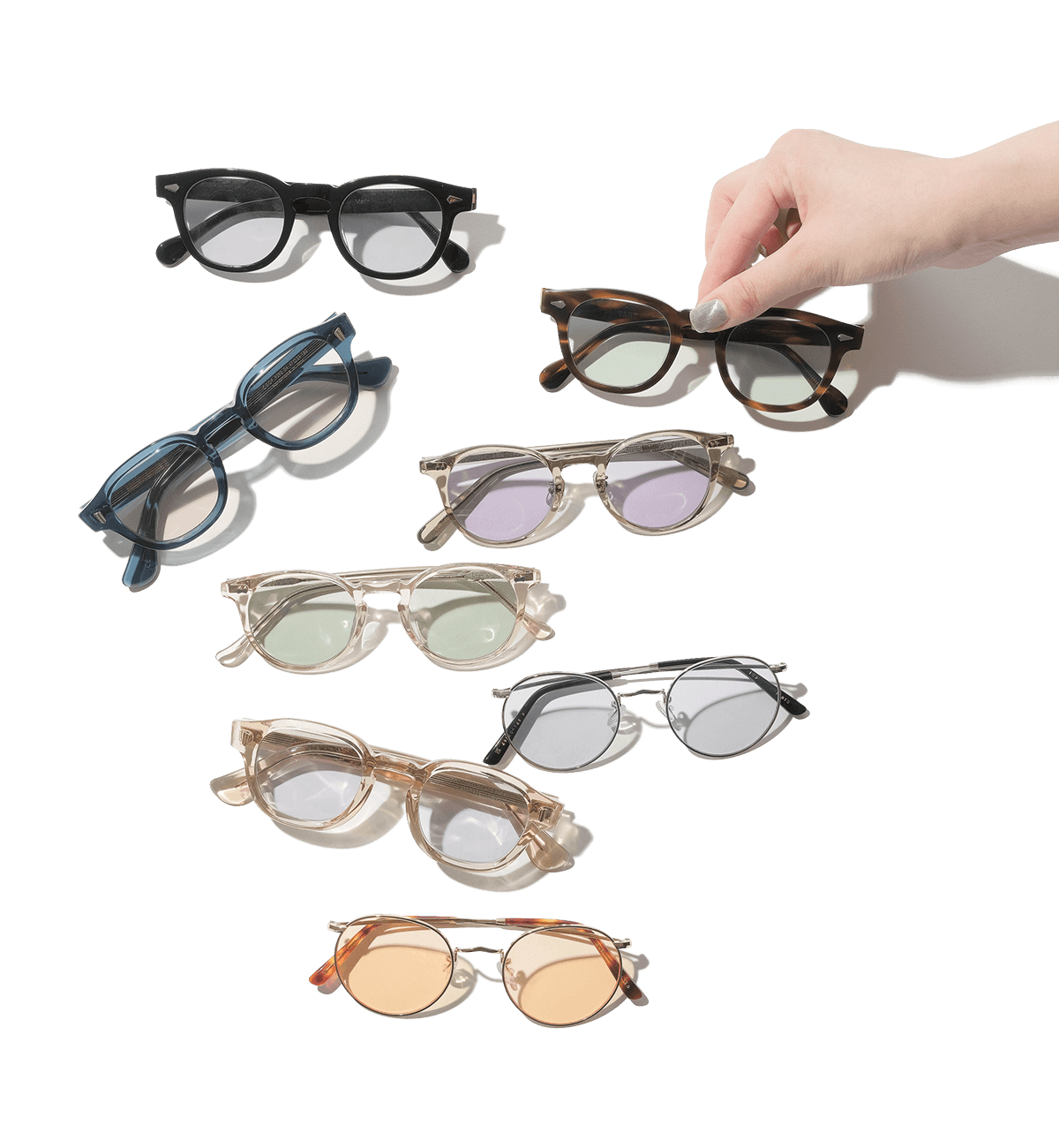 気分に合わせてアイウェアのスタイリングもチェンジ。