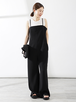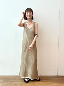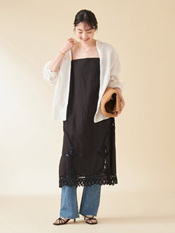アクセサリーで盛る!1枚でトレンドムードをたっぷり醸せるRIAM LINENメッシュTANK ワンピースを着こなしたPlageのmaki。ネックレスやブラックバングルをワンポイントに。Lilasのmariもボーイッシュなサロペットスタイルにイヤーカフをレイヤードして女っぽさを味付け。