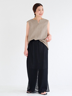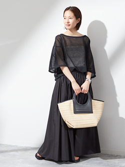 ボリュームスカートとMIXL’ESSAGEのOzakiはブラックコーデを軽やかなボリュームスカート×メッシュTシャツで夏らしく涼しげにアップデート。B.C STOCKのMayuはメッシュタイトスカートをレイヤードすることで、一気に今年らしい着こなしに。