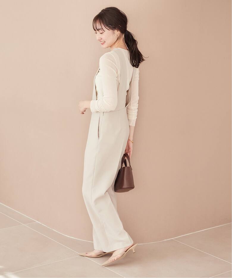 キレイめデザインこなれ感と同時にリュクスな品も醸す、端正なサロペットをクローズアップ。VERMEIL par ienaではクラシカルなカシュクールデザインや、スリーピーススタイルがセットになったハンサムなスーツ風など、周りと差がつく一着が登場。