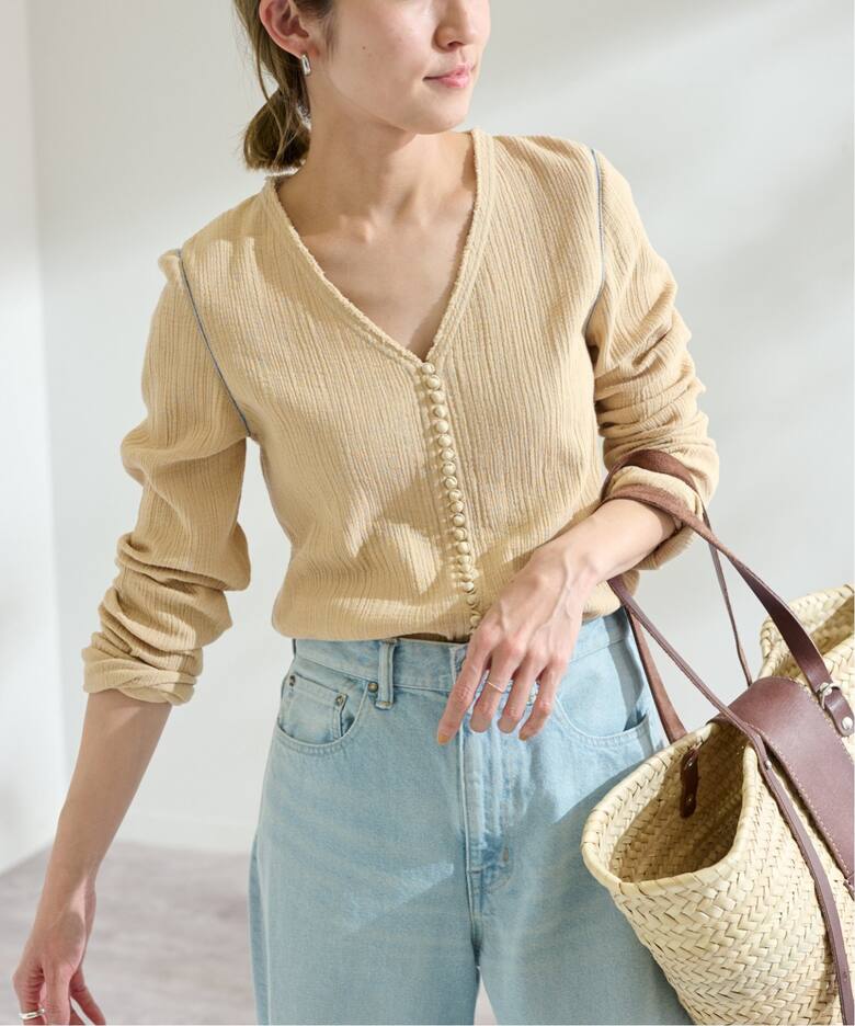 イージーケアでヘビロテSLOBE IENAは今年らしい透け感ムードを足せるリネン混のシアー素材や、カラバリ豊富なクロップド丈をリリース。IENAのフレンチリネンアンサンブルカーディガンは、通勤スタイルにも重宝する上品なデザインが魅力。