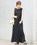 ノースリーブのロングワンピース。