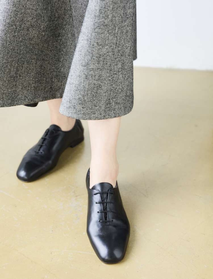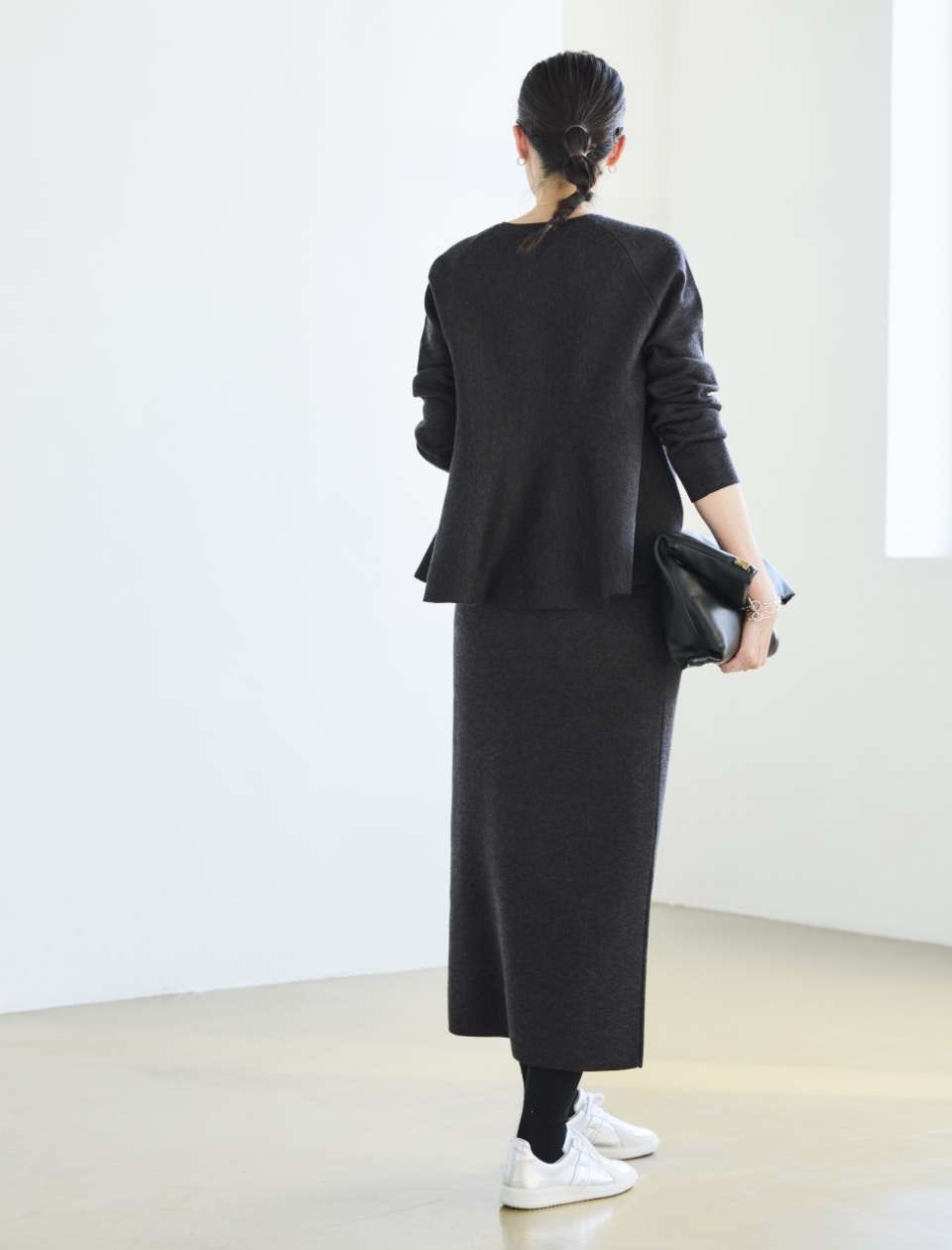 重くなりすぎないようインナーや足元の肌見せがマスト。
