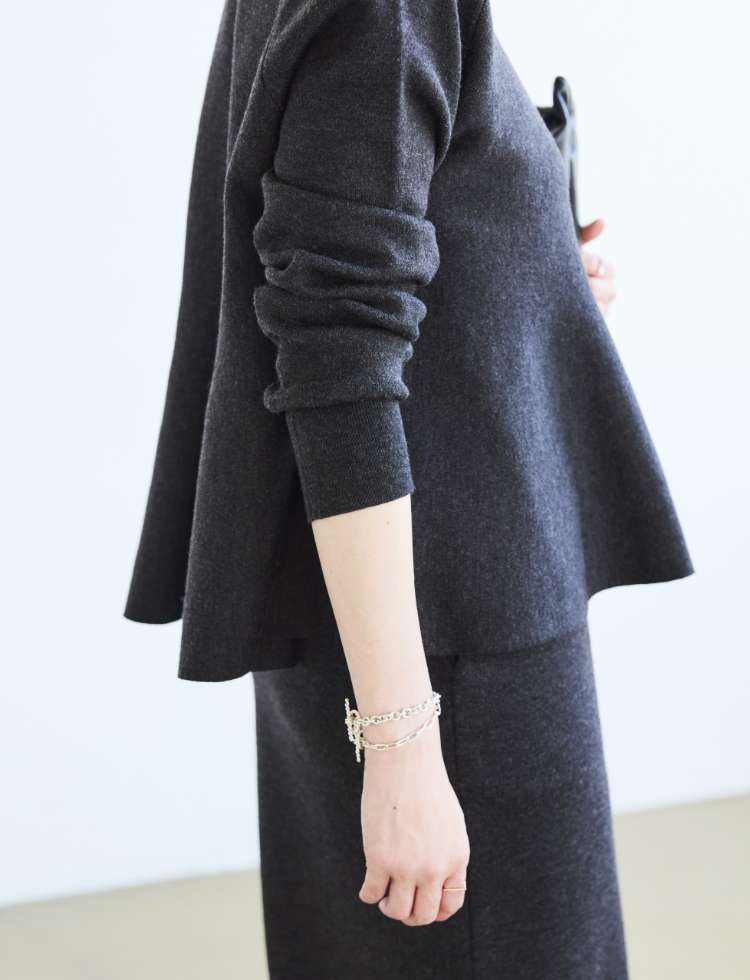 エレガントさを纏う裾ペプラムプルオーバー。軽くてずっと着ていたいようなリラックス感が心地よい。