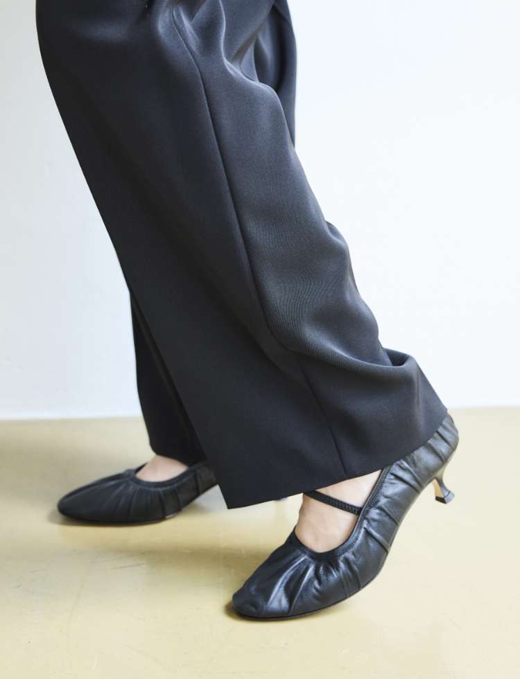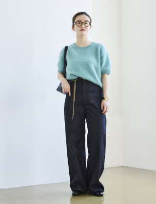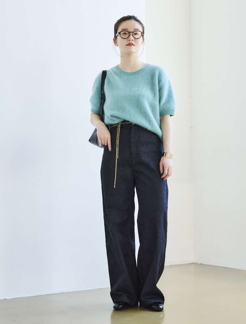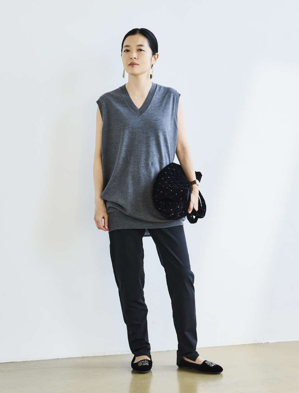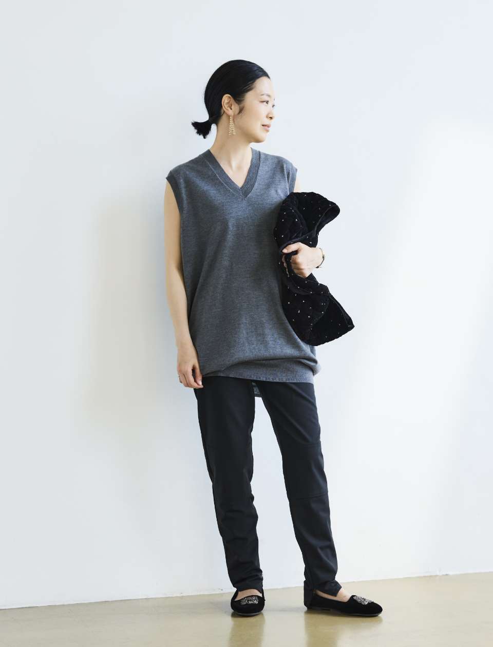 一見シンプルながら、今年らしいシルエットのスキニーボトムと