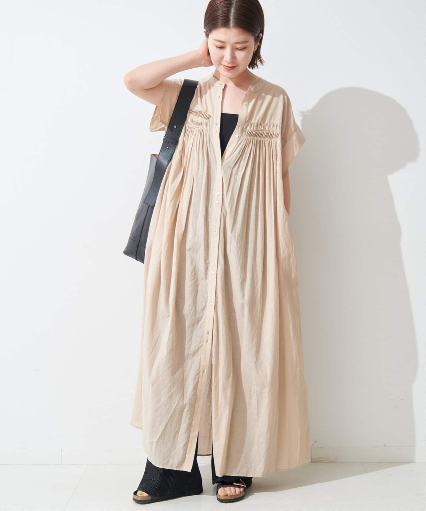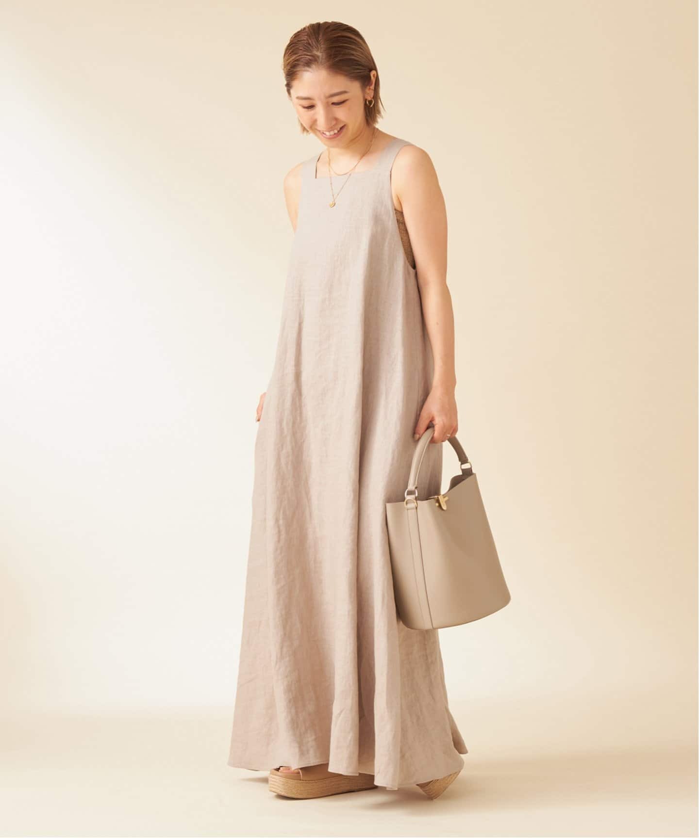 優しい色味で女性らしい品が高まるベージュは、リネン素材と相性抜群。ドライな質感が甘さを軽減してヘルシーモダンなPlageのLINEN MAXIドレスがお手本。Spick & Spanボイルピンタックワンピースはデニムコーデにさっと羽織るのもおすすめ。