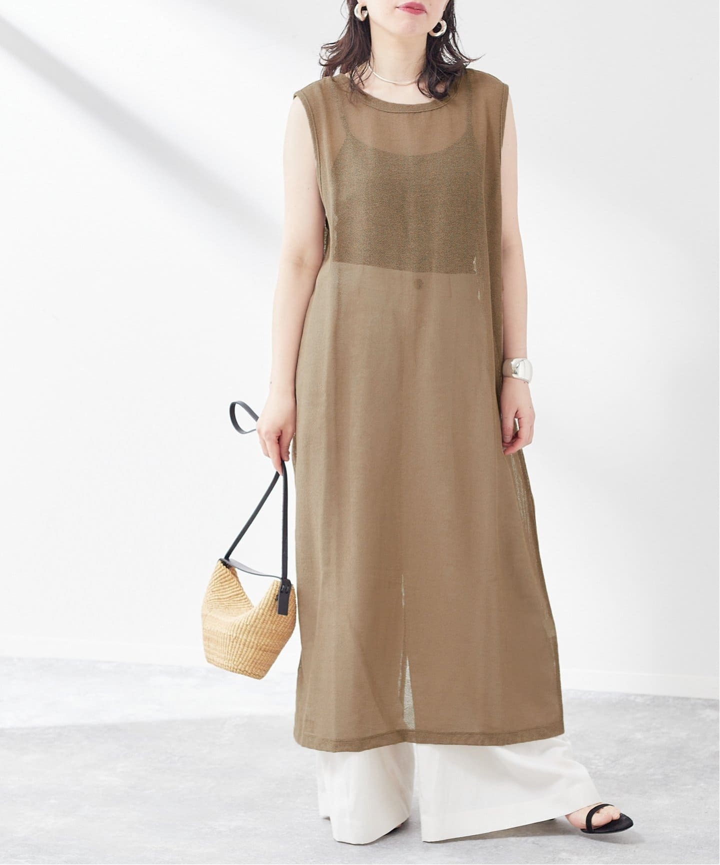 上品な大人カラーのベージュで夏素材を満喫