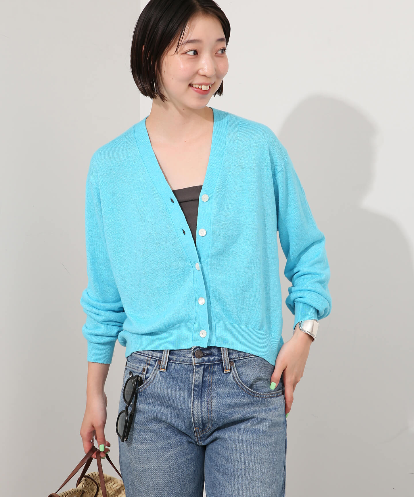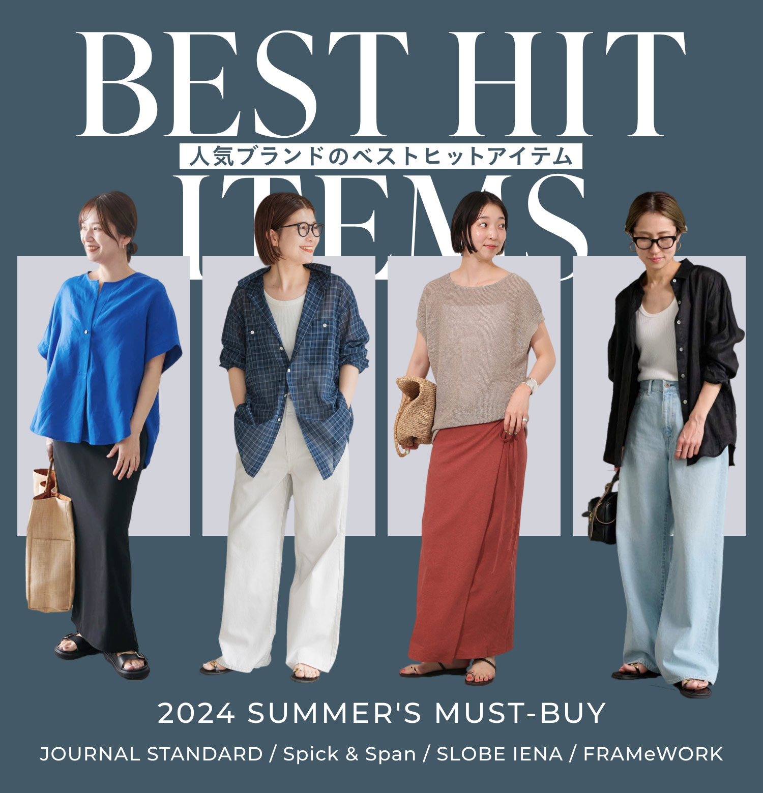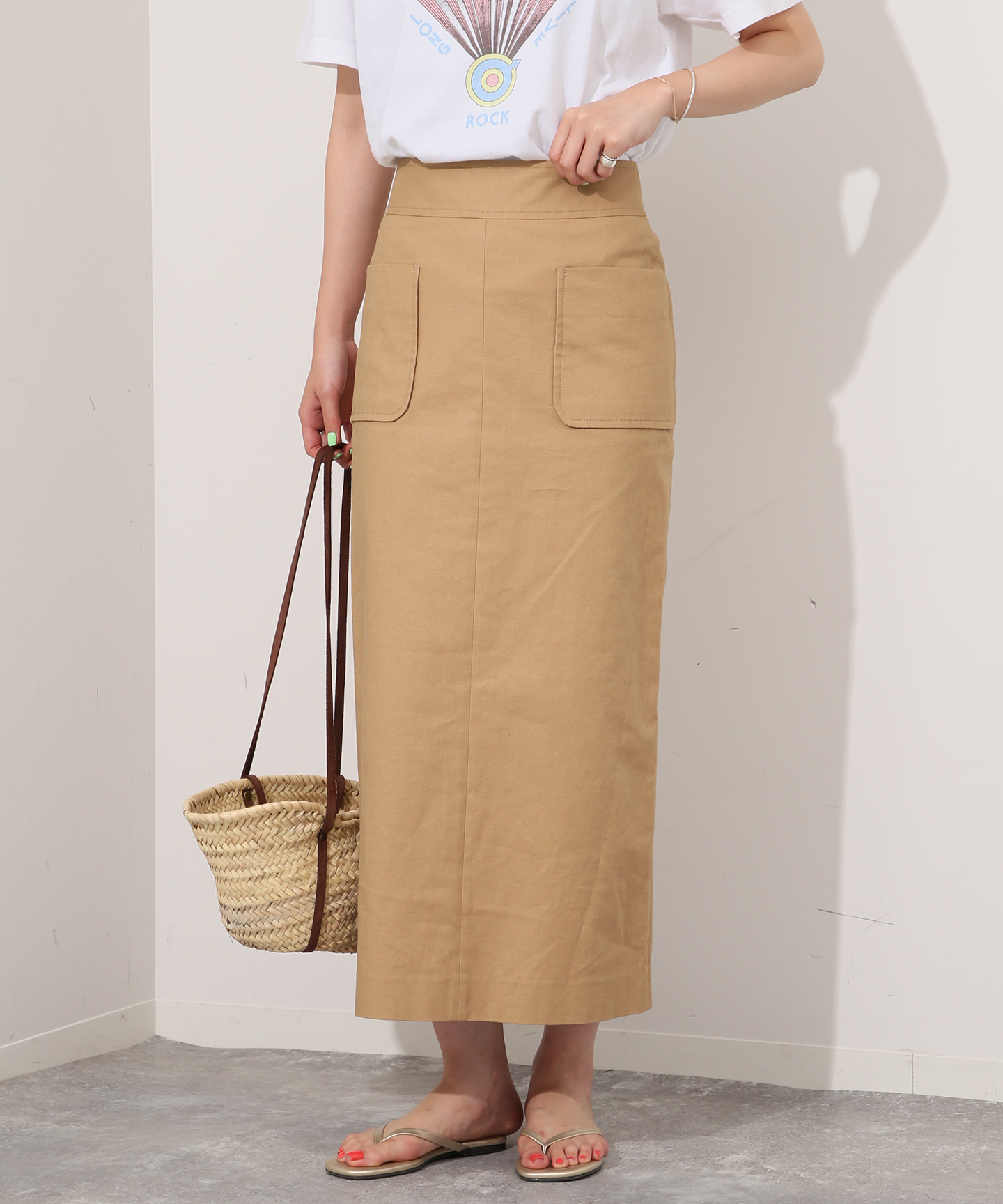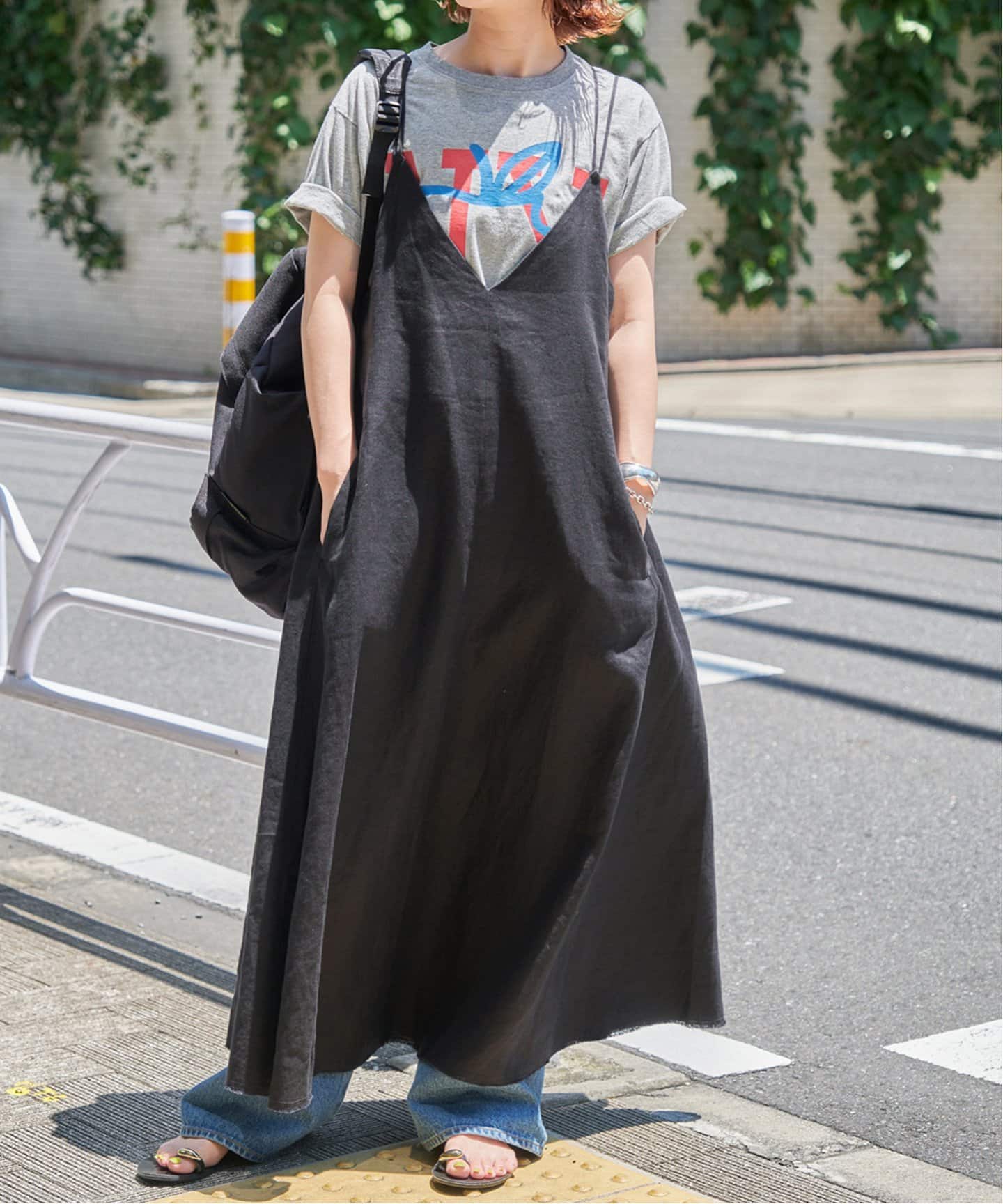 リネンアイテムに支持フレンチリネンコットンスカートは、リネンにコットンとポリウレタンを混紡することによってシワになりにくく、洗練されたハリのある表情に。見た目にも涼しげなリネン混フレンチスリーブニットは、ゆるっとした落ち感がこなれていて肩周りをカバー。