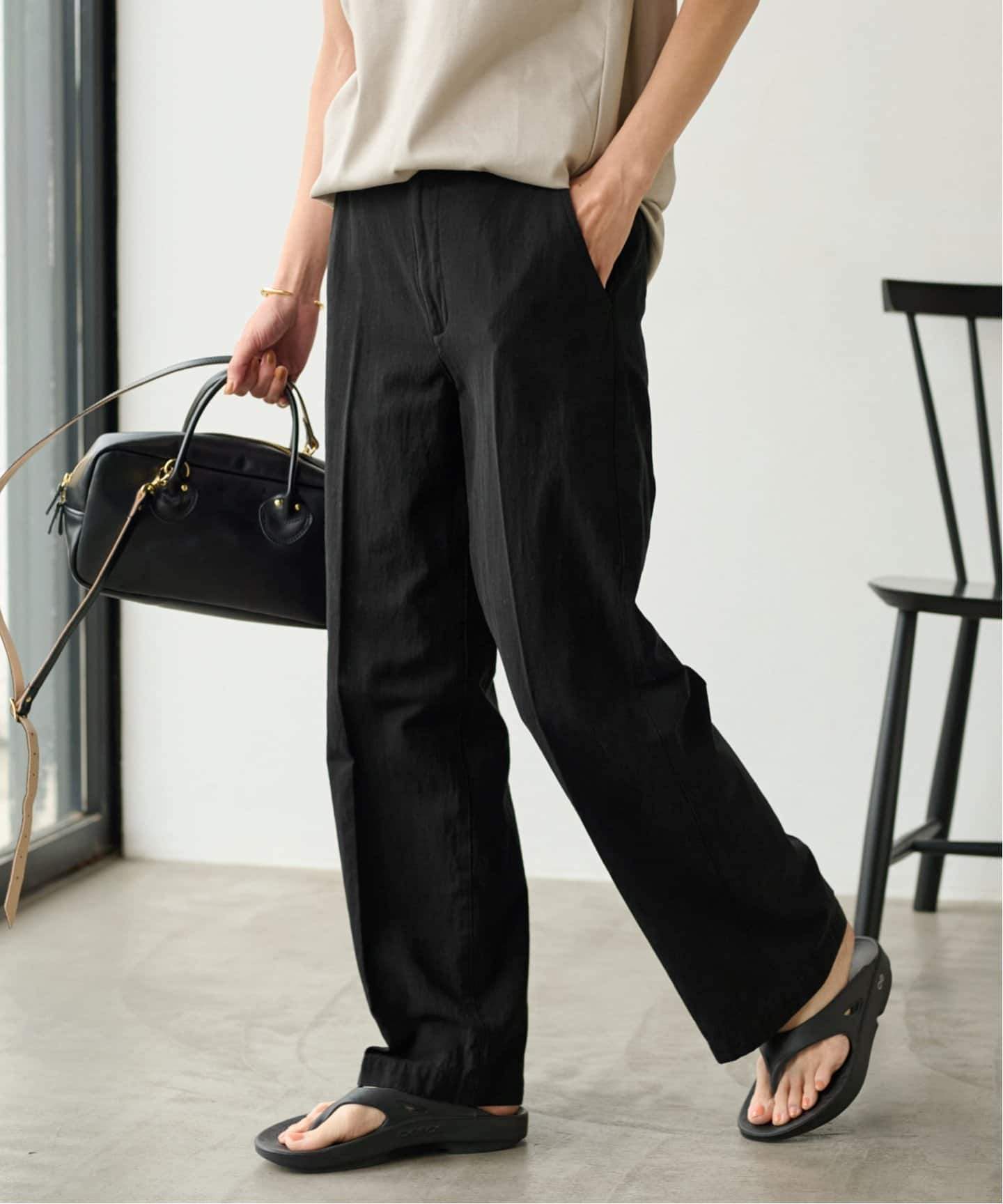 軽快な“きちんと見えパンツ”すとんと落ちたストレートシルエットが人気のレーヨンリネンツイルドロストパンツは、しなやかで心地よい素材が夏に◎。シャリ感あるタッチのコットンリネンストレートパンツは、カジュアルアップに最適なきちんと見えデザインがグッドポイント。