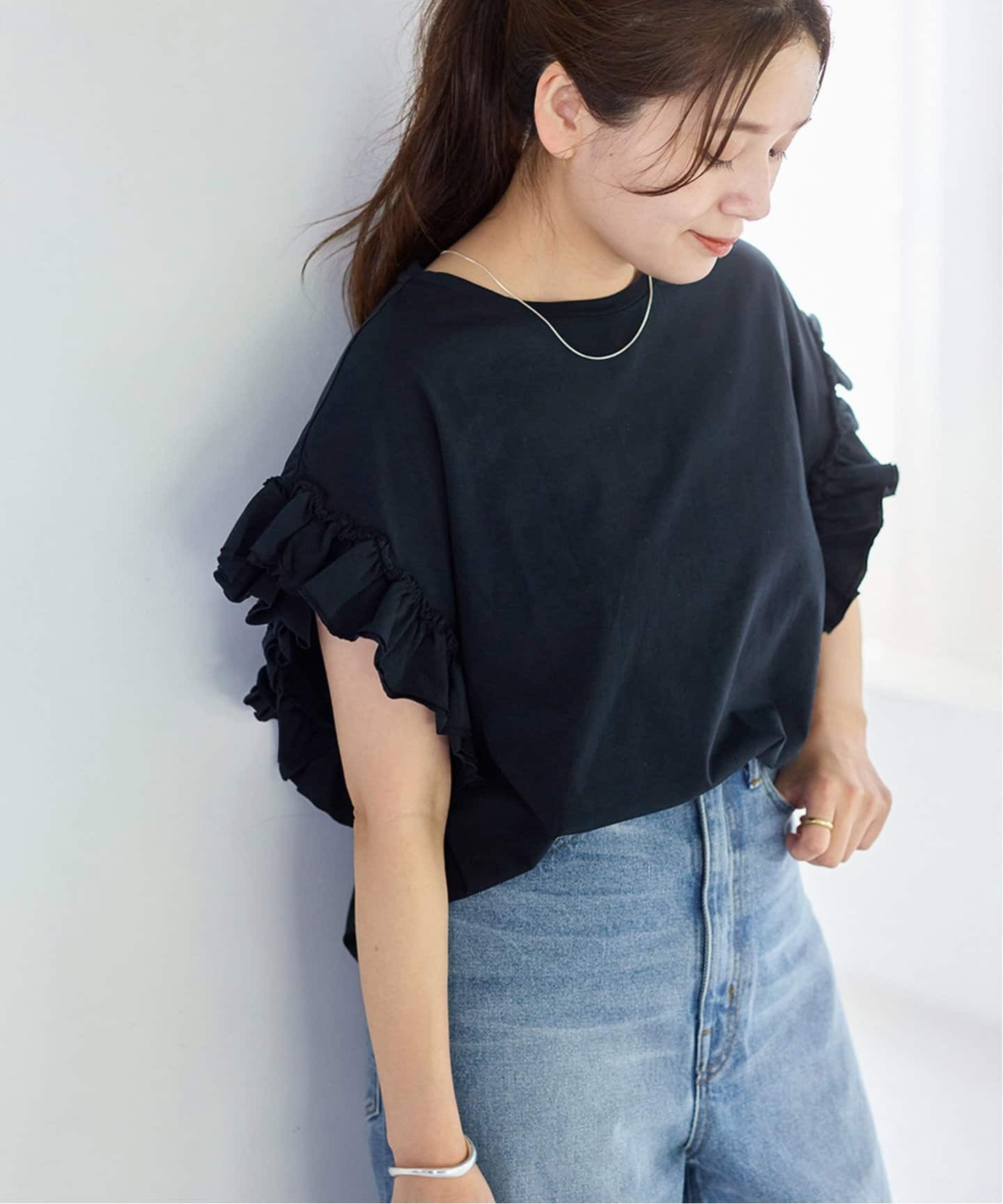 サマ見えカットソー見た目にも涼しげなドライタッチの素材をたっぷり使ったSLOBE IENAポンチョプルオーバーは、Vネックがスッキリ見えもキープ。JOURNAL STANDARDクリアコットンフリルTeeは、ポイントになる袖のフリルが二の腕をカバーしてくれる優秀デザイン。