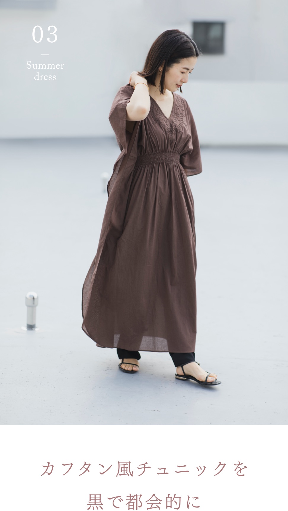 カフタン調のデザインは、ともするとエスニック風に転びがち。