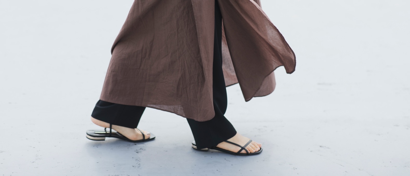足元はビーサン風サンダルで、エフォートレスなこなれ感を演出します。