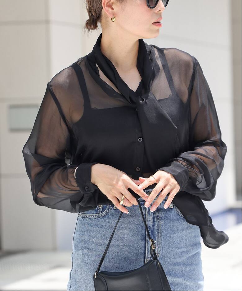 1枚あると重宝する着映えトップスDeuxieme Classeは、OMBRAのシアーブラウス。トレンド大本命の透け感たっぷりのボウタイデザインは、華やかさがありつつもスウィートすぎずモダンな印象に。NOBLE別注RITAロゴTは、大人っぽいフォントのロゴがすっきりと映えるデザイン。