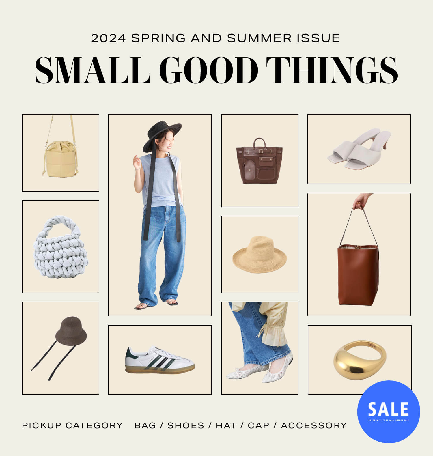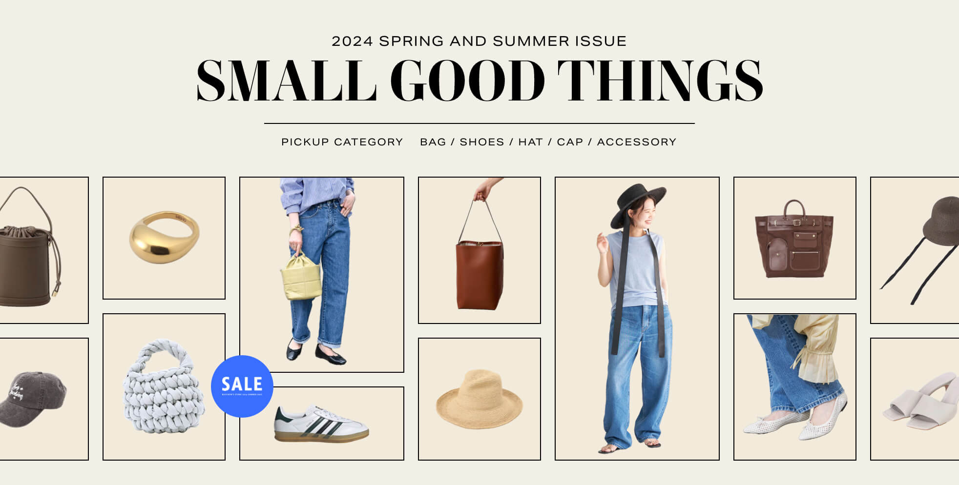 セールで賢くGET夏だけでなく、年中通して使えるレザーやナイロンのバッグが狙い目。LE TALONの triangleバッグやADD CULUMNなどミニサイズがアクセントに◎。通勤スタイルにはFRAMeWORK のLA SCAIAビッグラウンドショルダーをチェックして。