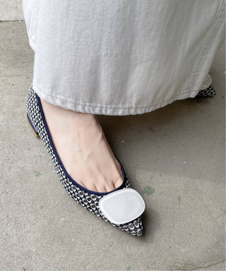 レディなパンプスLE TALONのポインテッドクリアオーナメントフラットは、エレガントなポインテッドトゥのローヒールにモダンなクリアオーナメントをプラス。トレンドのメッシュ系の清涼素材だから華美になりすぎず、適度な抜け感もグッドポイント。