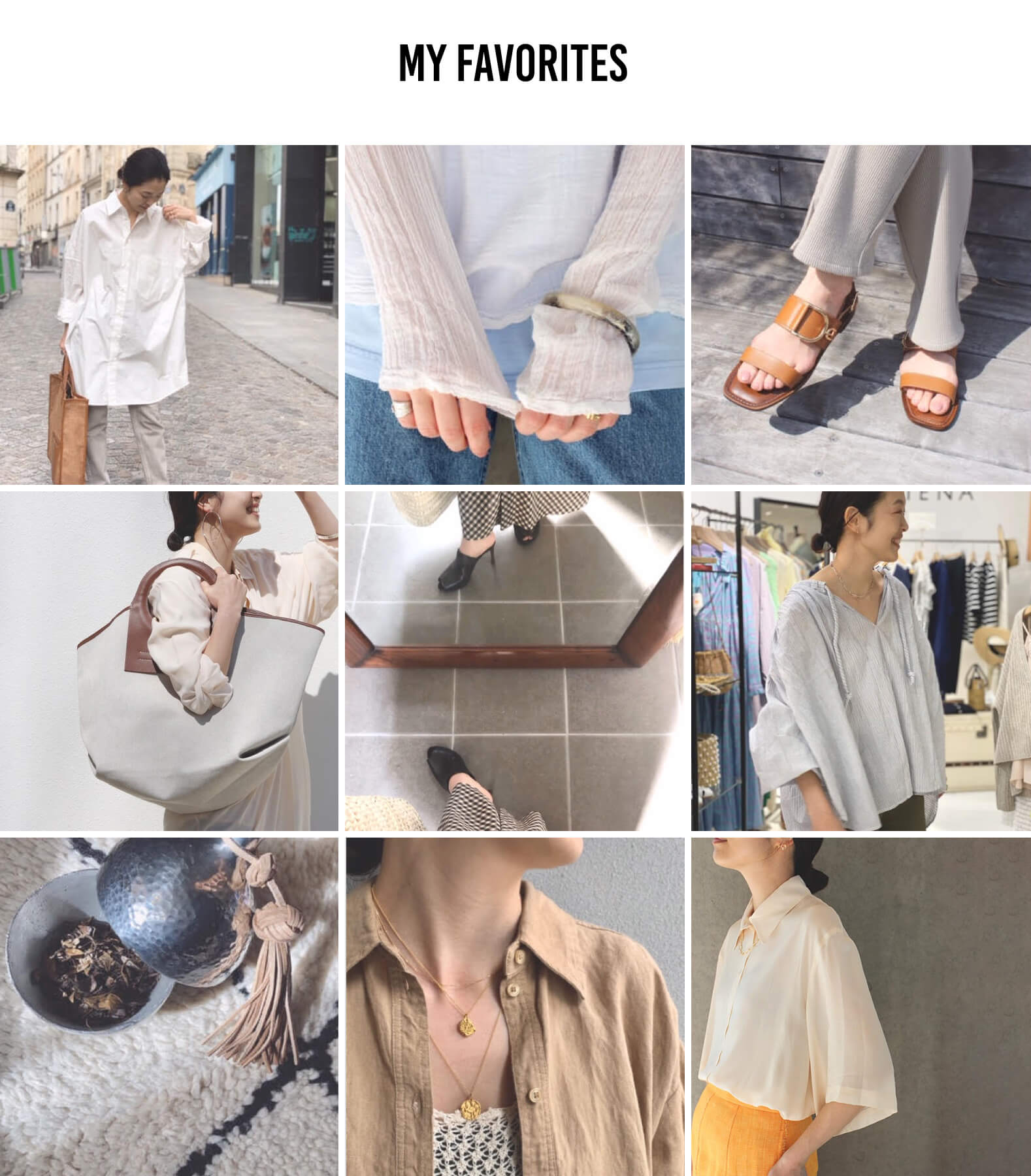 - ①リネンが好きでシャツやジャケットをよく買い足します。フレンチリネンのジャケットはIENAの定番!今年はリニューアルして、大人顔な仕上がりなので気になってます。 ②オールインワンが好きでたくさん持っているので、インナーとして使えるものを買い足したいと思っています!”AURALEE”のカットソーはとにかく着心地がよくてすでに何枚か持っていますがリピートしたい!③コットンリネンシリーズは色違いで持っていてもいいくらい万能。マイベーシックとして今年らしいカラーをゲットしたいですね。