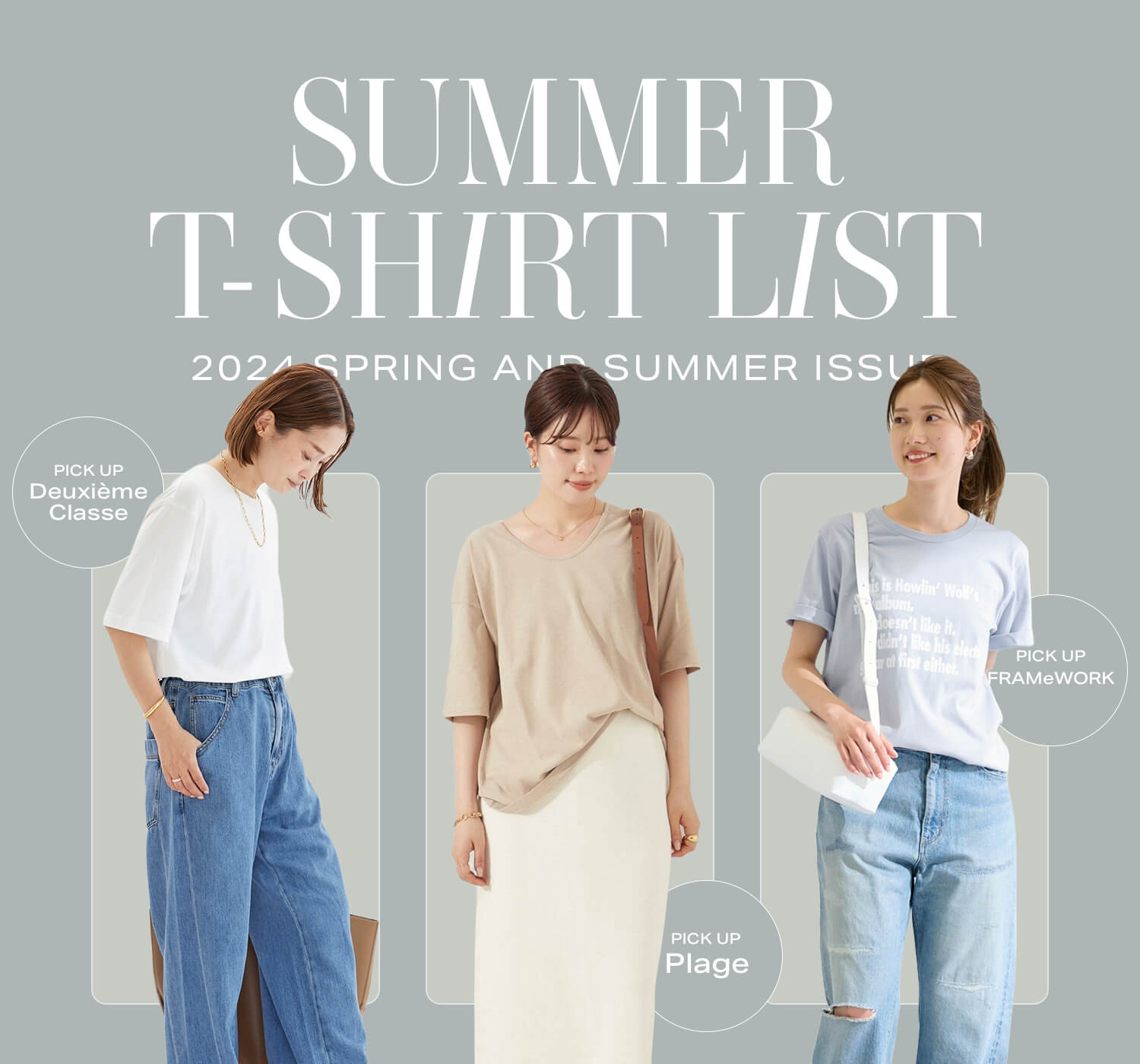 コーデの主役になるヴィヴィッドカラー夏らしいチアフルなカラーTも大充実。女っぽいセンシュアルな抜け感を演出するならSLOBE IENAのシアー天竺5分袖Tシャツ。ビタミンカラーを投入してコーデをブラッシュアップするならFRAMeWORKのブライトカラーTEEがおすすめ。