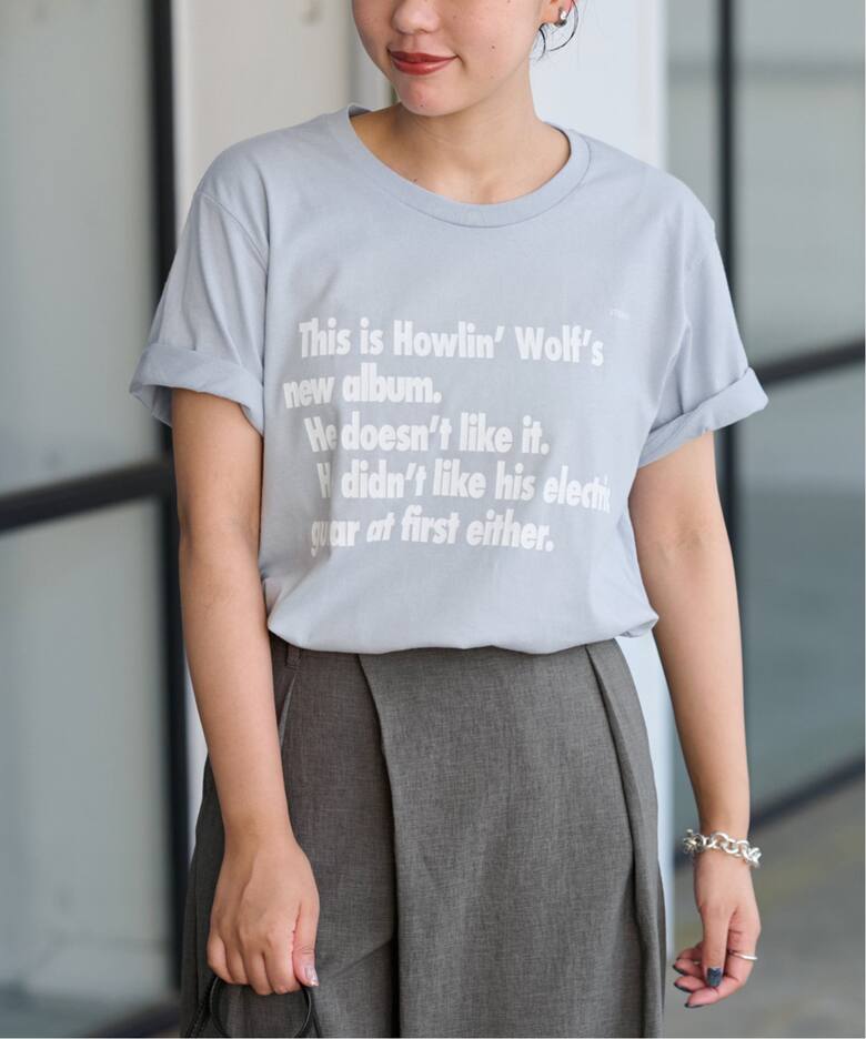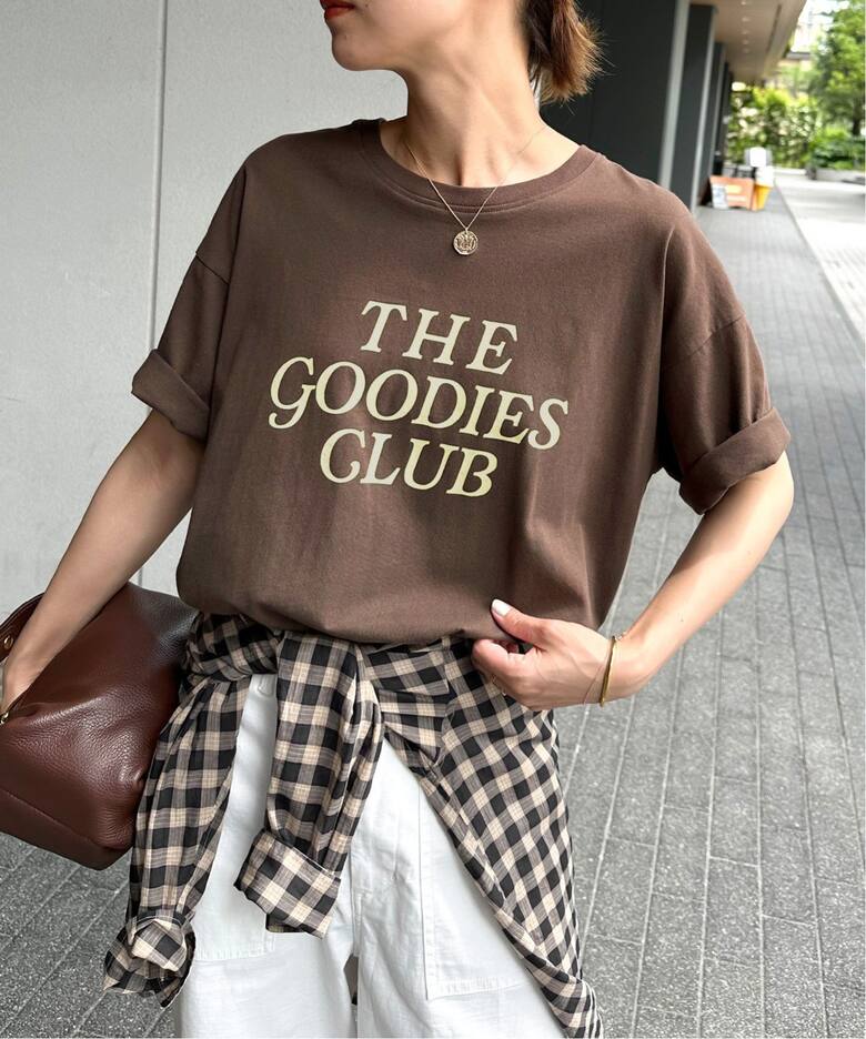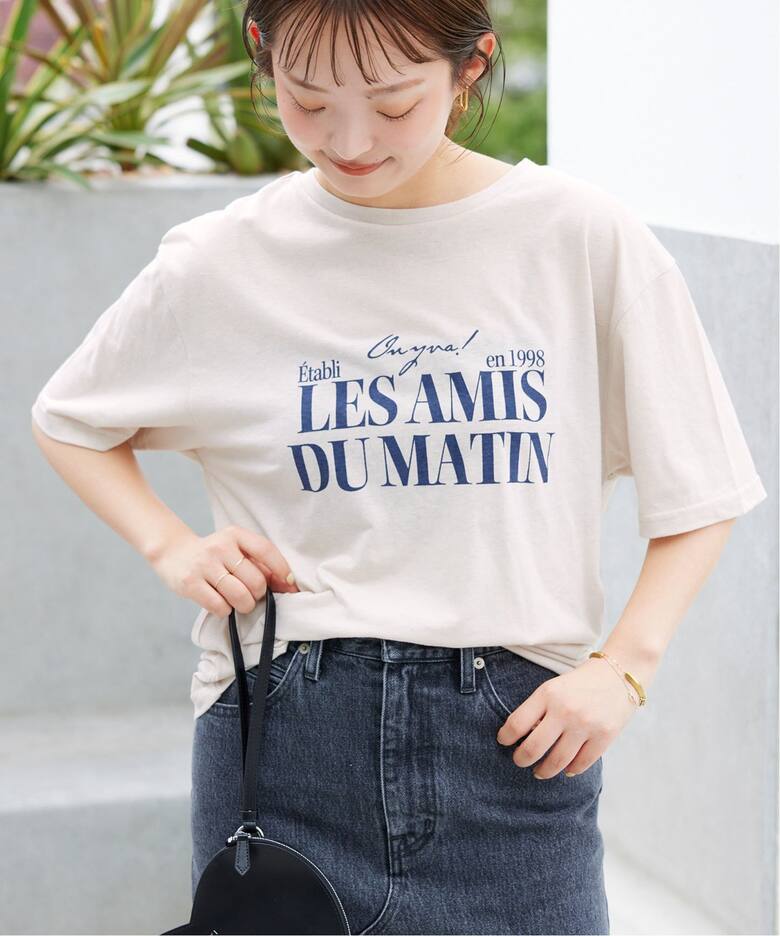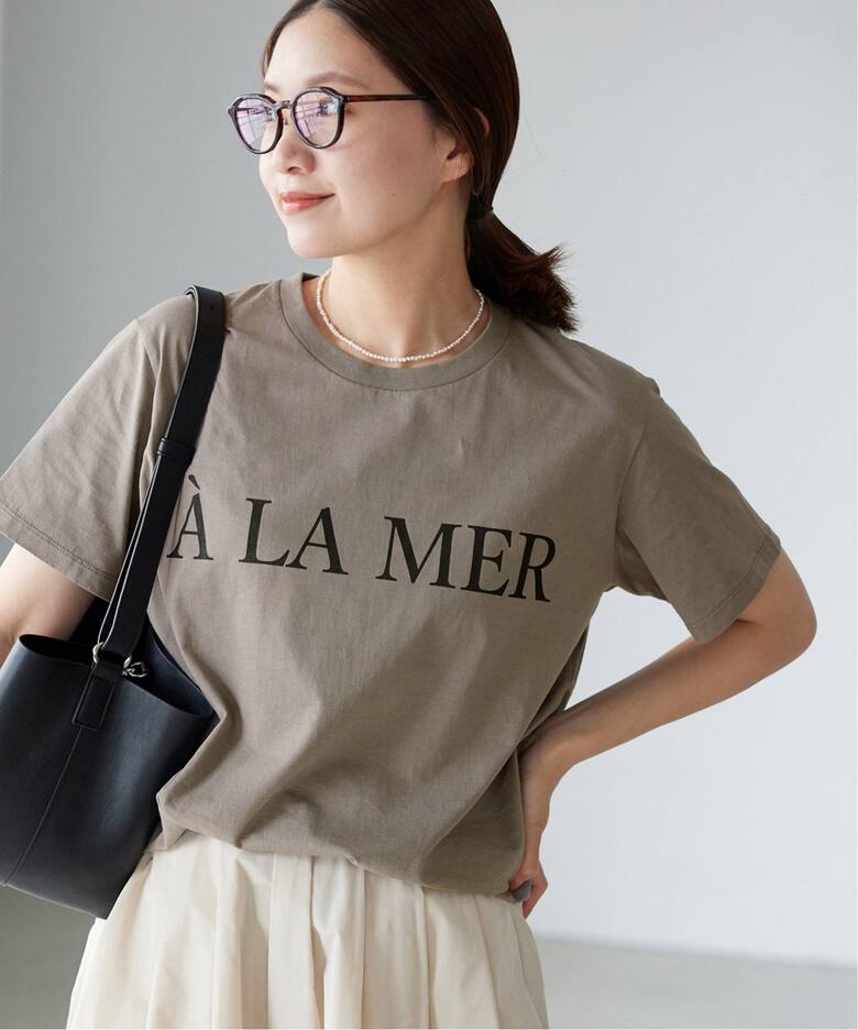 洗練フォントのロゴTがカギレイヤード要らずでコーデの鮮度が急上昇するロゴデザインTシャツ。relumeのGOODIES CLUB ロゴプリントTEEは茶系がベースだから、今買って秋までロングシーズン活躍。IENAのA LA MER Tシャツはフェミニンコーデに好相性。