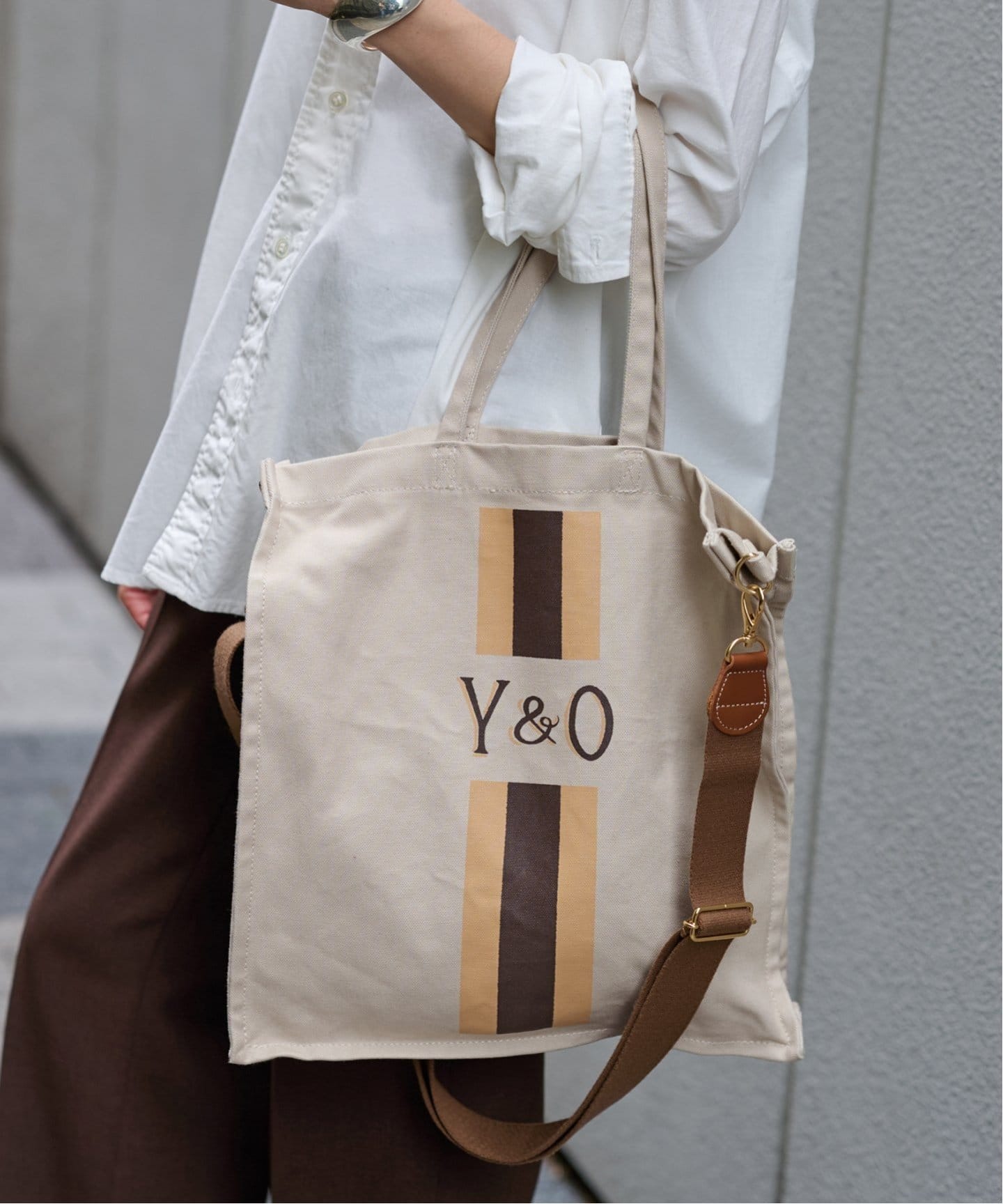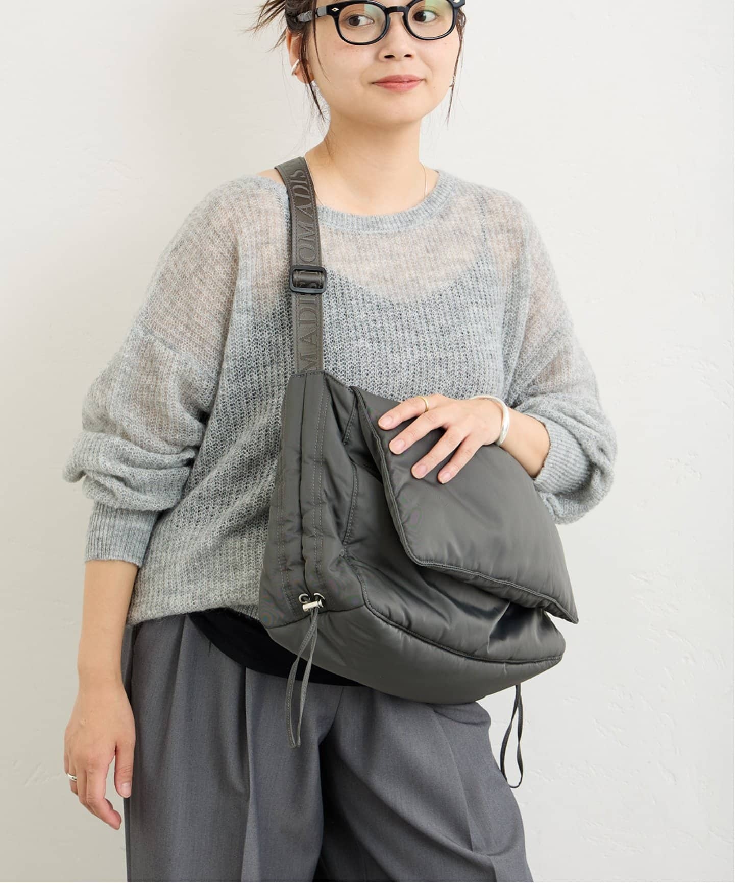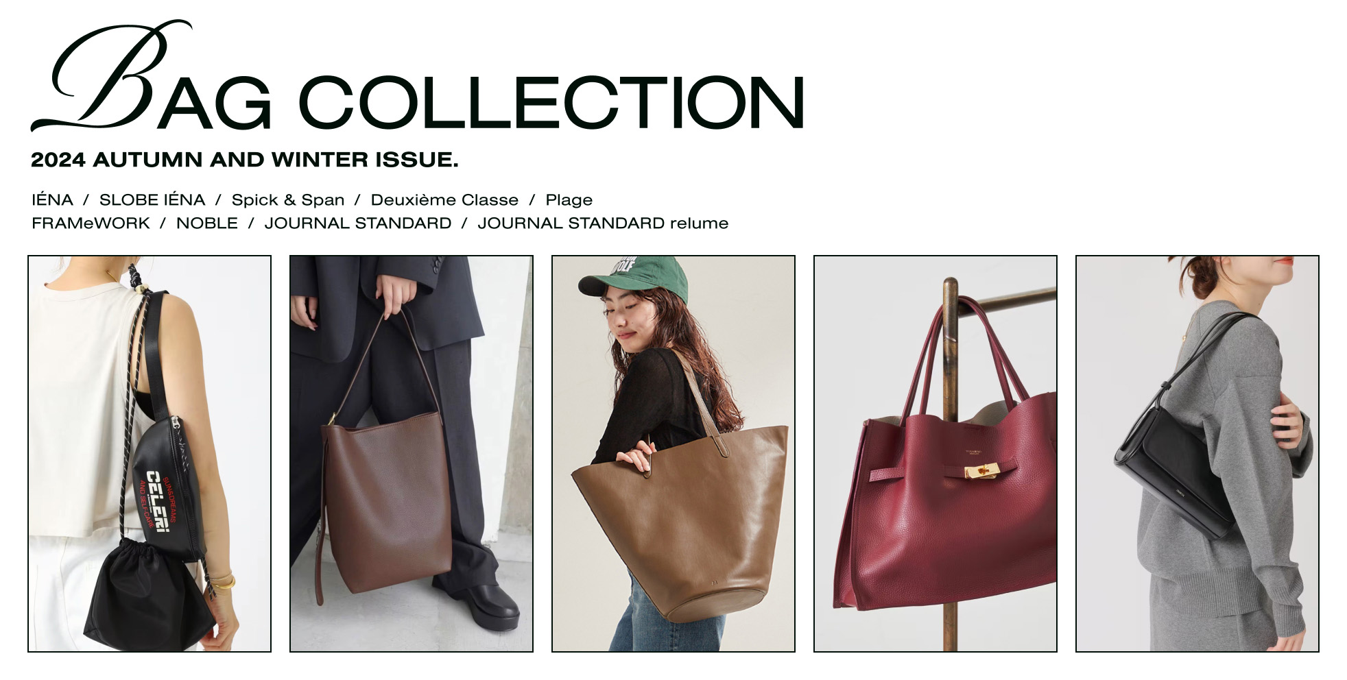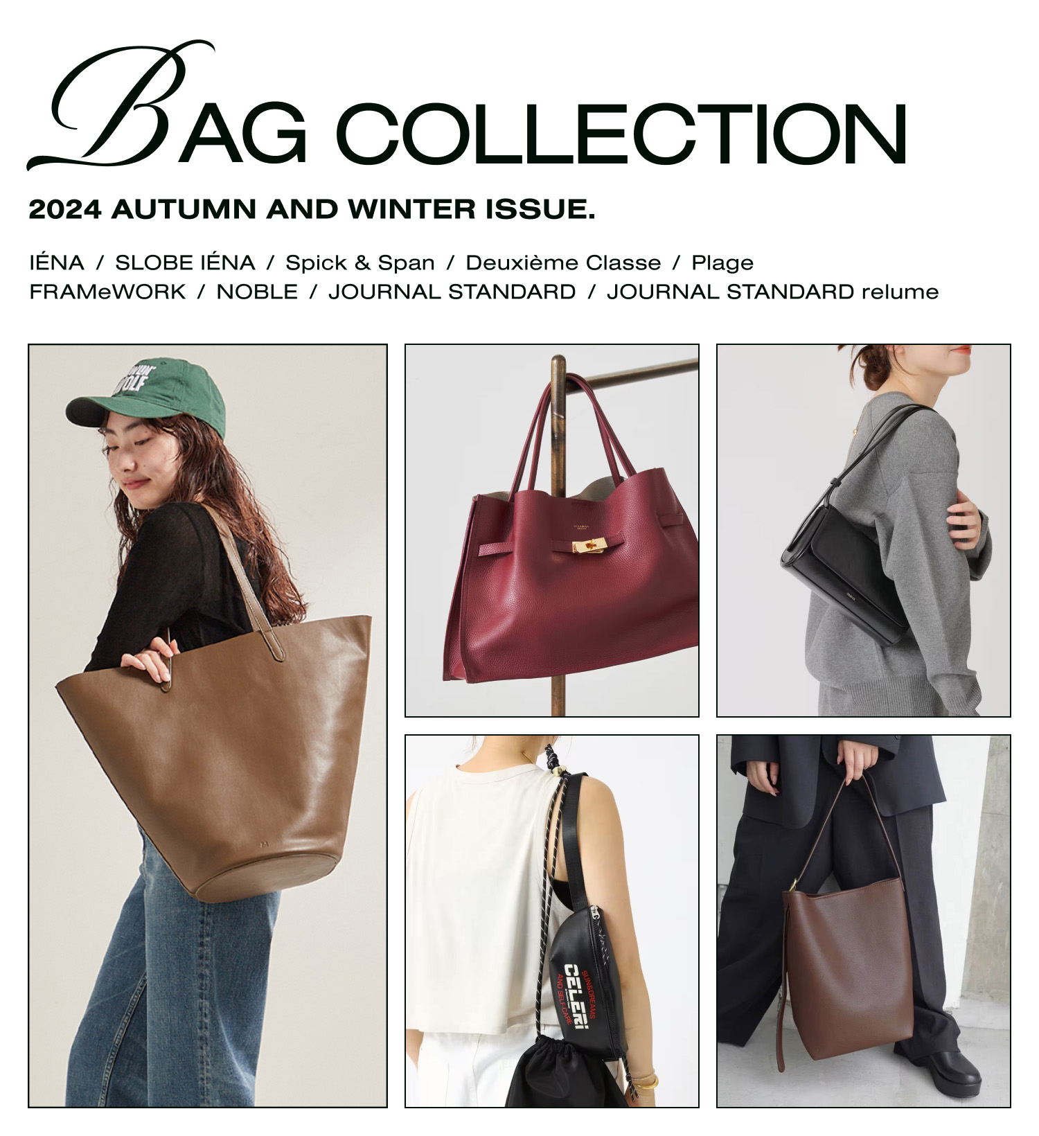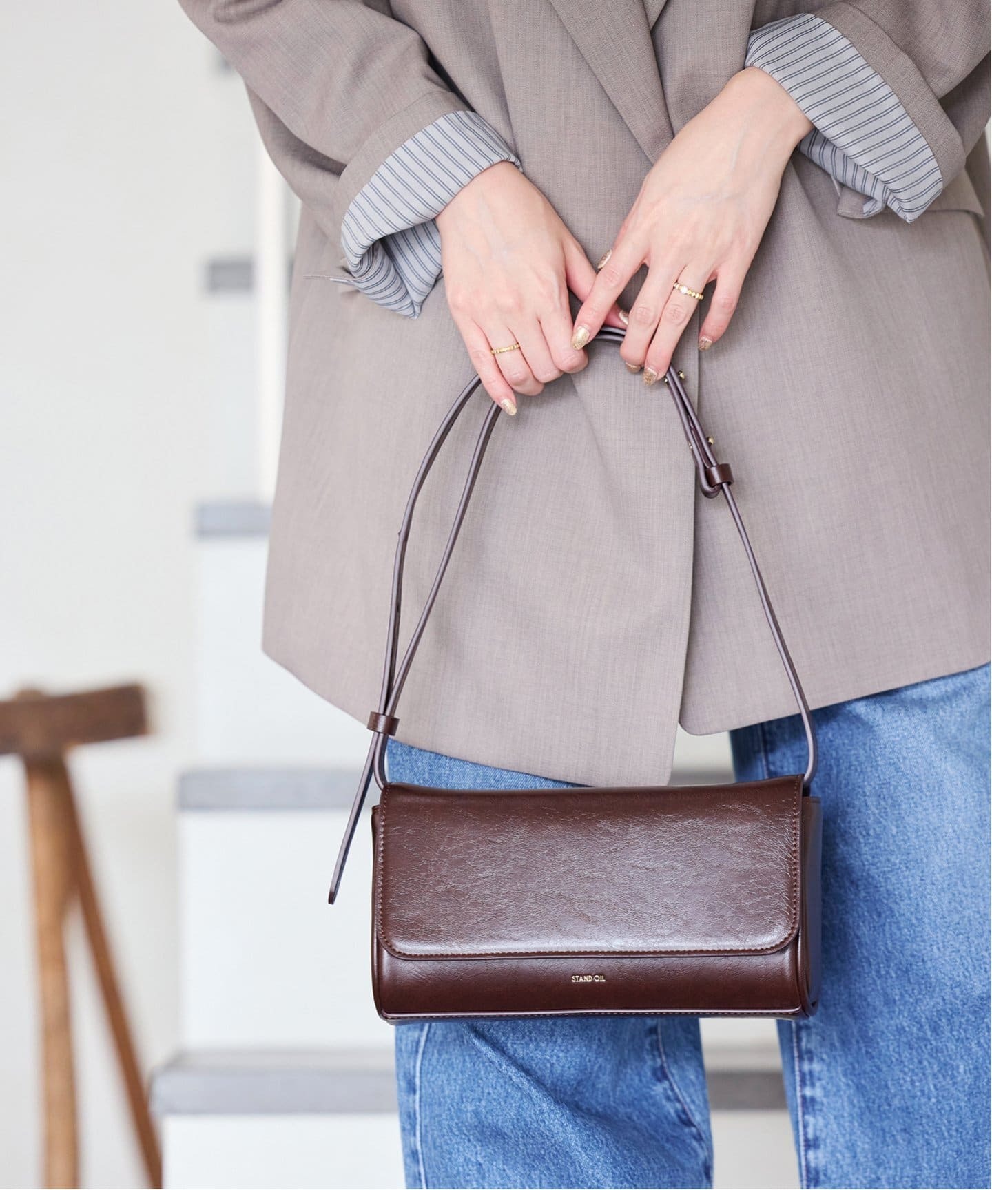 洗練された印象にキレイめなシーンや通勤スタイルにおすすめなバッグは、洗練されたムードの横長シェイプ。JOURNAL STANDARDはSTAND OILのバターケースのような長方形バッグをプッシュ。ストラップを取り外せばクラッチバッグとしても使える万能デザイン。