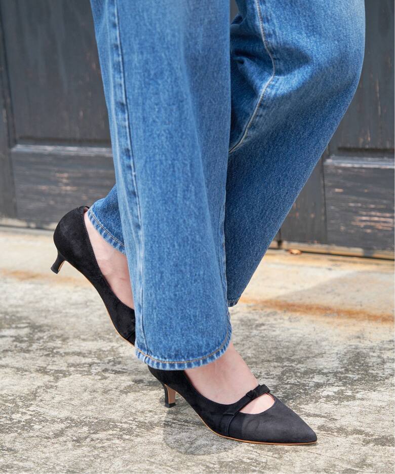ポインテッド一択!ネイビーやボルドーといったシックなアッパーと、深めのカッティングが大人モダンなREMME ポインテッドトゥパンプス。さりげないリボンディテールがスウィートになりすぎないSpick & Span リボンディテールパンプスはカジュアルにも好相性。