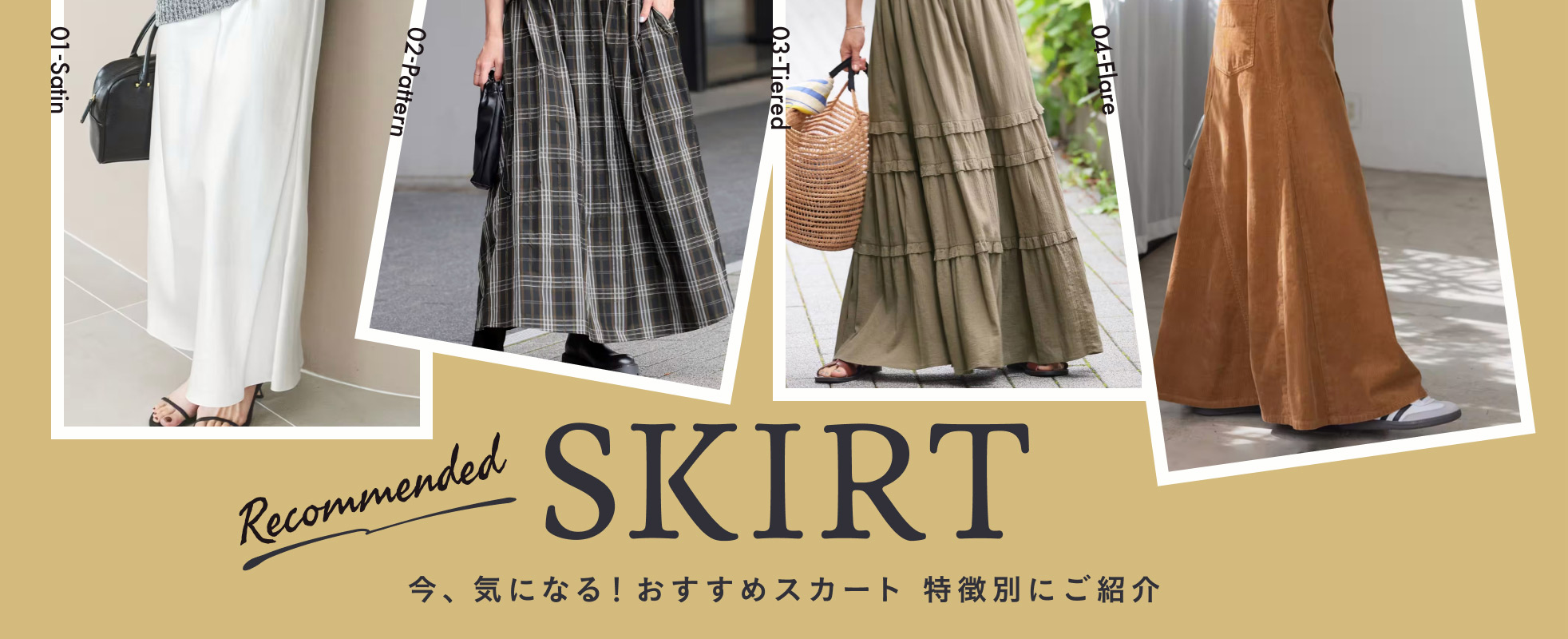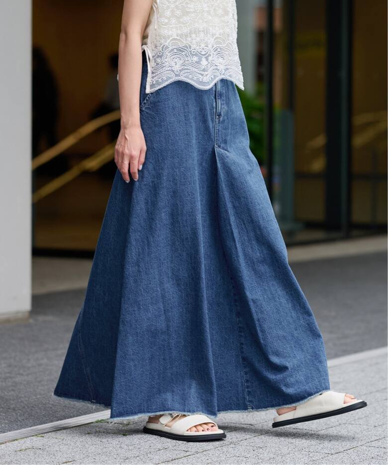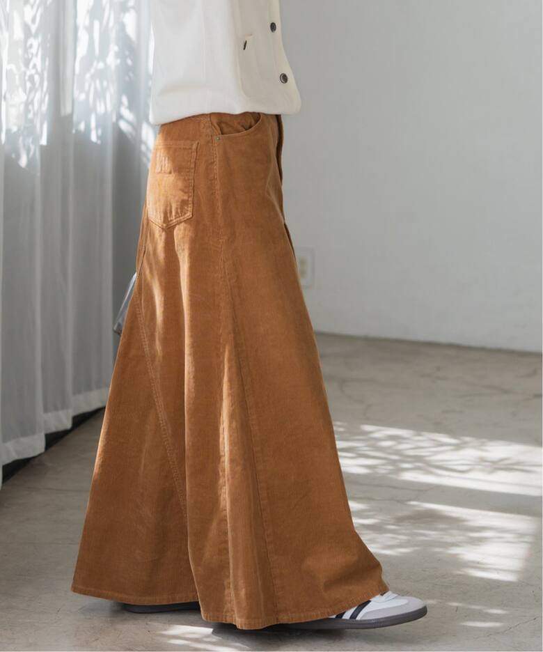 ドラマティックな揺れスカートコーデュロイに旬なヴィンテージライクな加工をほどこしたフレアシルエットが素敵なSpick & SpanのLa Hutteフレアスカートや、カジュアルなデニムがぐっとロマンティックな印象にアップデートされたrelumeのPAYDAYデニムロングスカートなど。