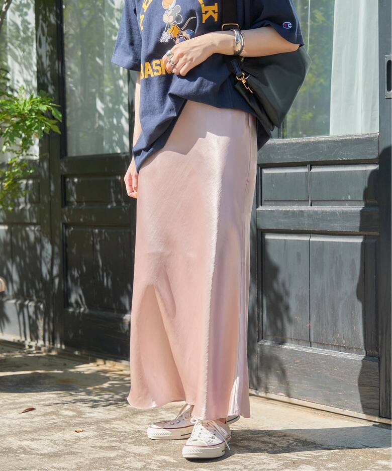 大人っぽいツヤを足し算カジュアルなTシャツと合わせるだけで、ワンランク上の上質なフェミニンコーデが叶うサテンスカート。着回し力の高さで選ぶならブラックやネイビー。重たくなりがちな秋冬コーデに軽さをもたらしてくれるホワイトやピンクも狙い目。