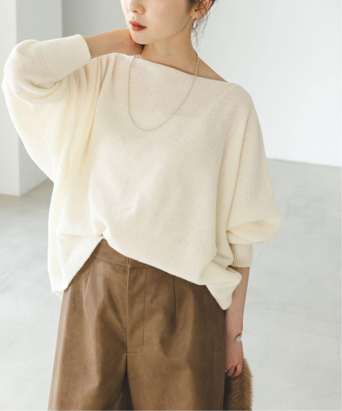 シルエットにこだわった名品トップスファインウールドルマンプルオーバーは、ゆるっとこなれるドルマンスリーブやデコルテをキレイに演出するボートネック、立体的なホールガーメントなどこだわりが詰まった名品。6色のラインナップがすべて再登場なのも嬉しい。
