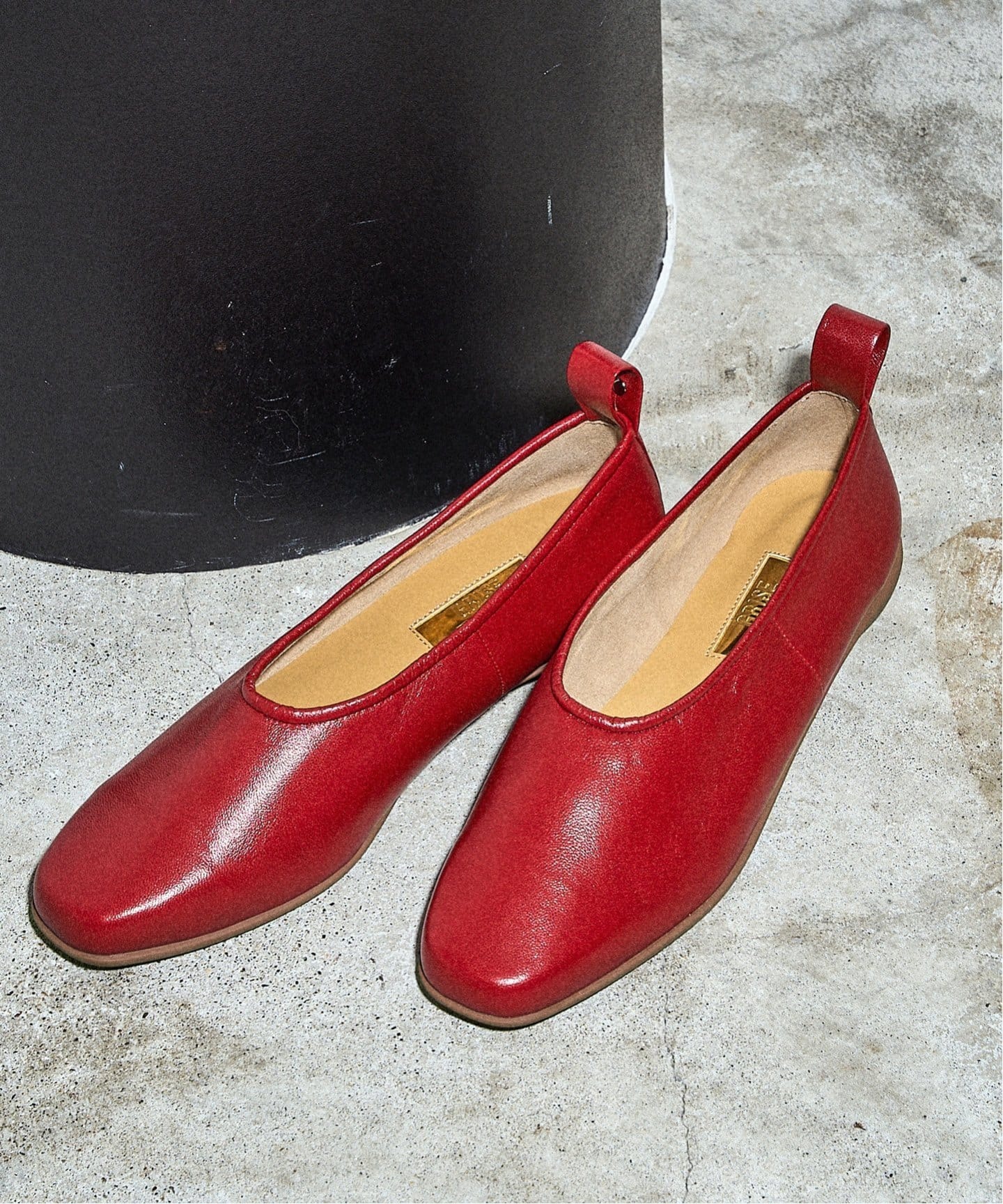 カラフルシューズほんのりレトロなムードとモードなニュアンスがちょうどいい、LE TALON GRISEレザーモールドソフトフラット。レディなレッドからトリミングが目を惹くキャメル、メタリックなシルバーなど、女心をくすぐるバリエーション豊富なラインナップ。
