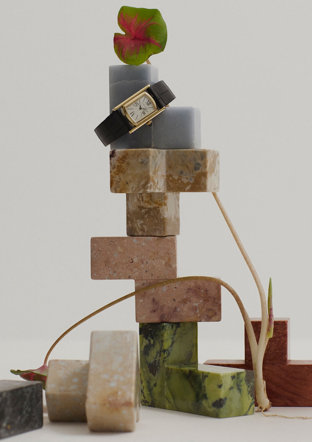 3Fのレセプションスペースでは、HIROBが集めた〈Cartier/カルティエ〉のヴィンテージウォッチがお出迎え。代表的なモデルの『Tank』は年代、形、ベルト違いでバリエーション豊富に揃えつつ、なかなかお目にかかることができないレアなモデルも多数並びます。
