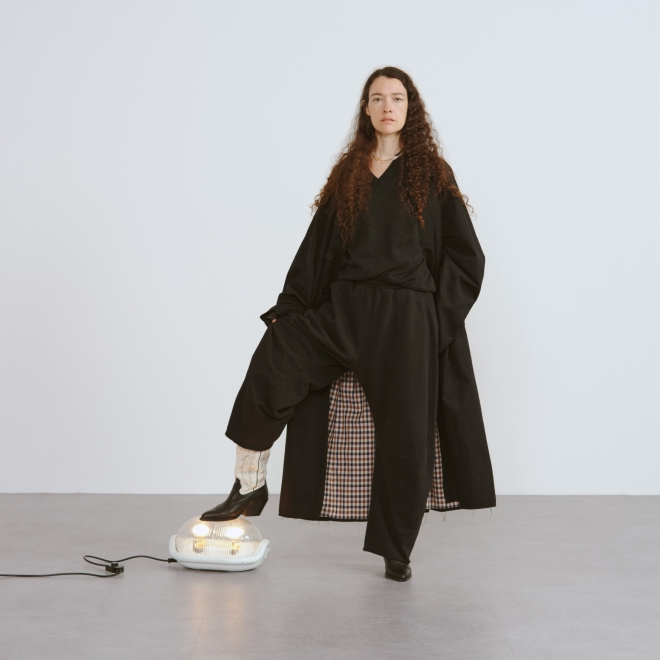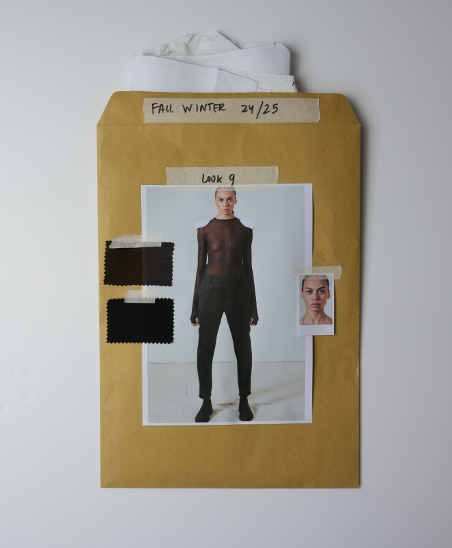 デザイナーのソニアはマスキュリンなテーラリングパターンや実験的なニットウェアからインスピレーションを授かり、セクシャルとクラフツマンシップという、相反するものの衝突が生み出す新たな美を表現したコレクションを発表しています。